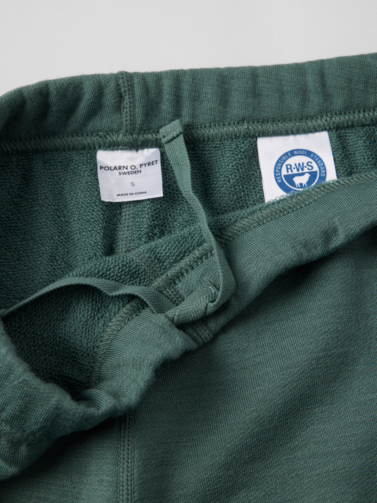 Lämpimät ja paksut housut pehmeää villafroteeta – itsestään selvä suosikki kylmällä säällä! Housut on valmistettu merinovillasta, joka imee tehokkaasti kosteutta ja auttaa säätelemään kehon lämpötilaa. Frotee säilyttää lämmittävän ilmakerroksen lähellä kehoa, ja villa sekä pitää lämpöä että hengittää. Yhdistä yhteensopivaan paitaan!