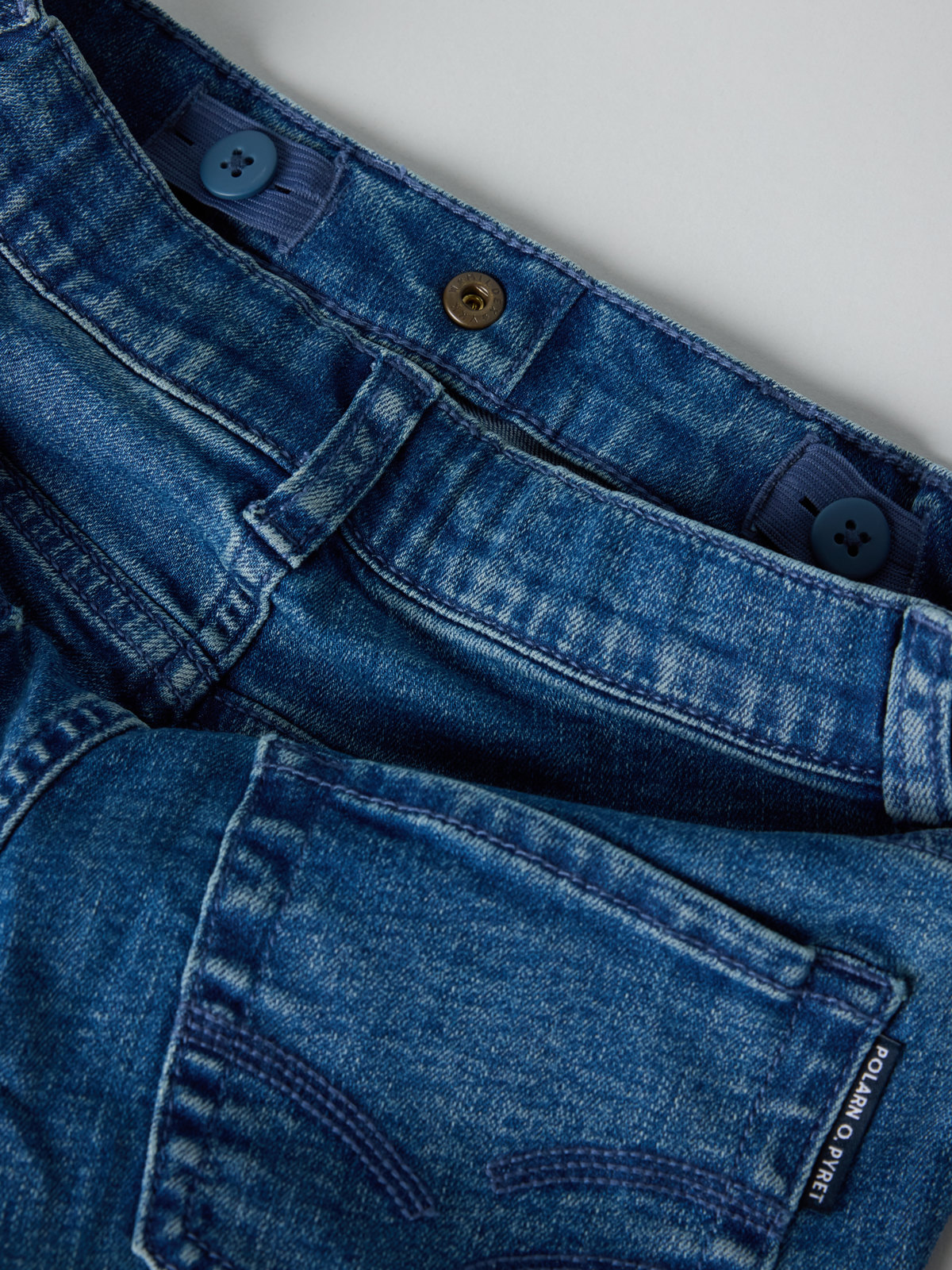 Pidä hauskaa FRANKIE-farkuissa – leikinkestävä, helposti jalkaan vedettävä malli, pehmeää stretchmateriaalia. Täydellinen lapsille, jotka haluavat rennomman istuvuuden ilman sepalusta ja nappia. Kaikki farkkumme on valmistettu GOTS-sertifioidusta puuvillasta keväästä 2022 alkaen!