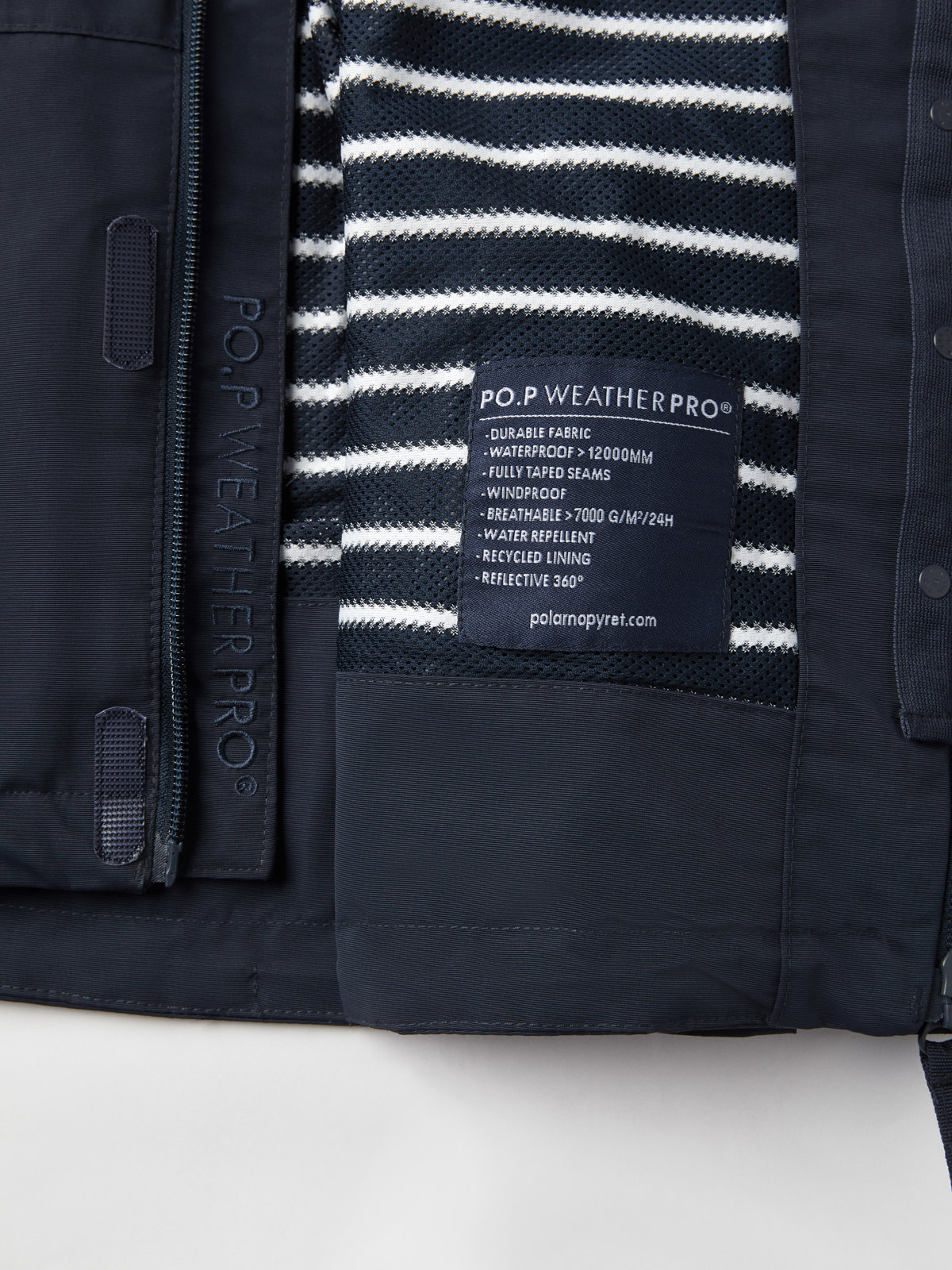 Ulkovaatteet, joissa on merkintä PO.P WeatherPro®, täyttävät kaikki vaatimuksemme teknisille ulkovaatteille, olipa kyse sitten kestävyydestä, vedenpitävyydestä, hengittävyydestä tai lapsiturvallisuudesta.