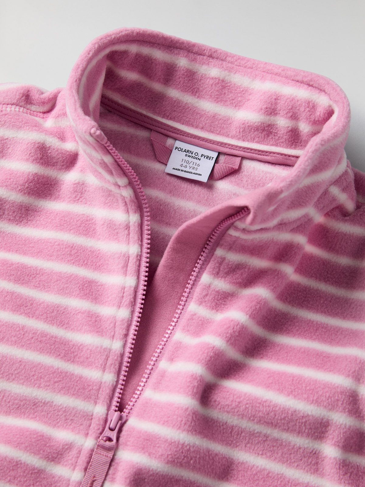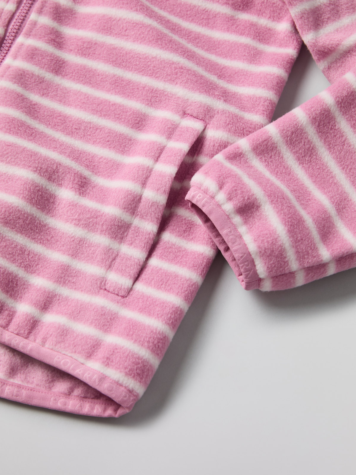 Raidallinen takki pehmeää ja kaunista fleeceä. Sopii täydellisesti lämpimäksi kerrokseksi ulkovaatteiden alle syksyn ja kevään retkillä sekä yhtä mukava ulkotakkina leudolla säällä.
