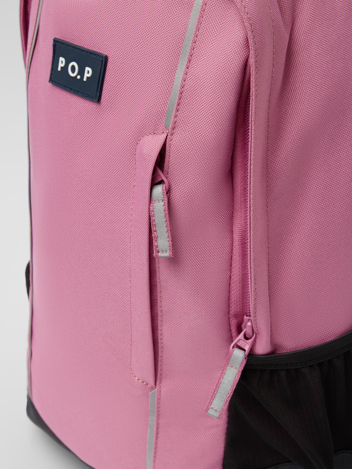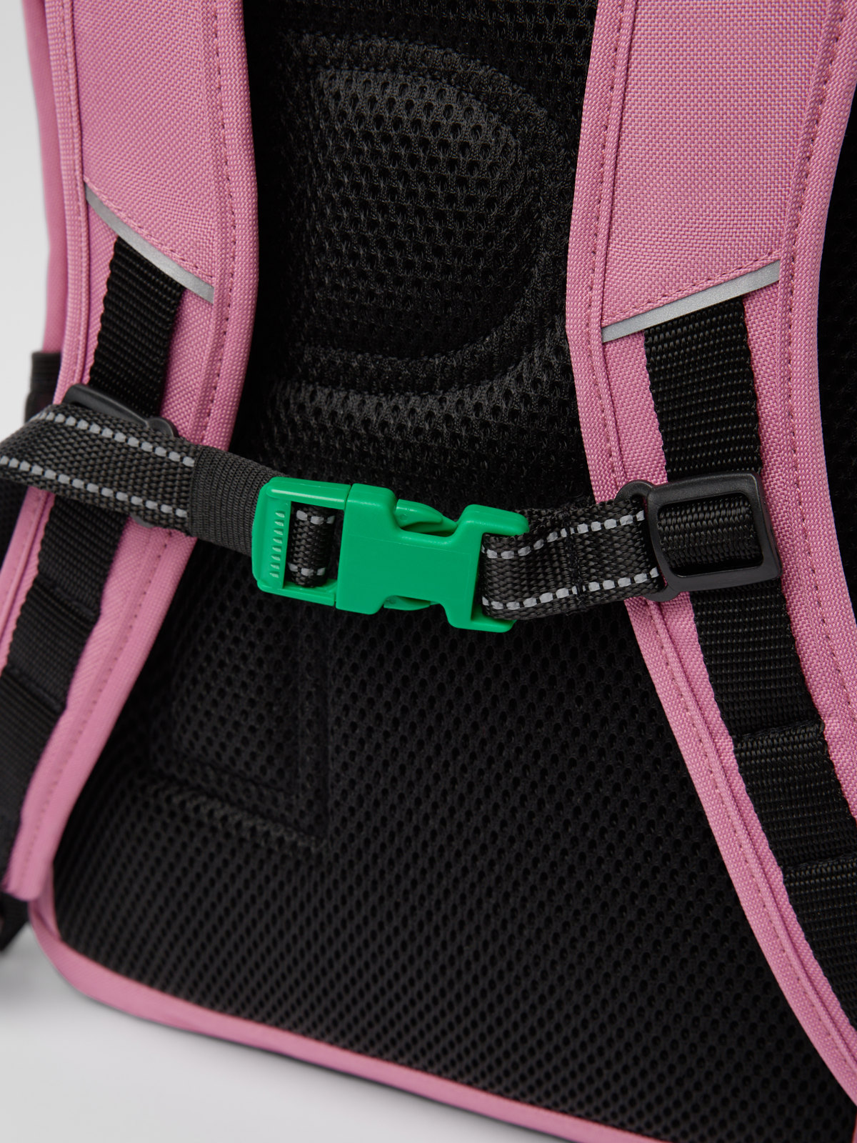 Repussa on pehmeä verkkoselkäpaneeli ja säädettävä rintaremmi turvalukolla siltä varalta, että jää johonkin kiinni. Rintaremmi auttaa jakamaan painoa tasaisesti. Reppu sopii täydellisesti A4-kokoisille papereille ja sisältää useita käteviä ulko- ja sisätaskuja tärkeille tavaroille sekä heijastimia näkyvyyden takaamiseksi. Tilavuus on 18 litraa, ja se sopii erinomaisesti lapsille päiväkoti-iästä alkaen. Mukaan kuuluu repun kokoon sovitettu istuinalusta!