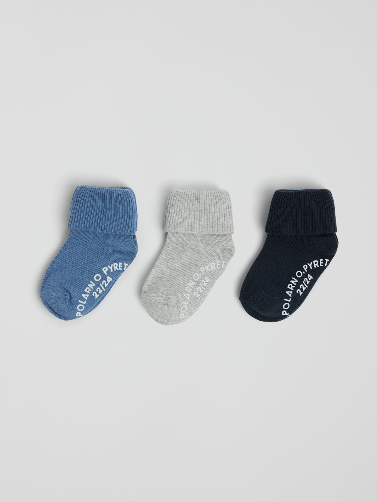 3-pack jarrusukat pehmeää luomupuuvillaa – asiakkaidemme suosikit! Sukissa on pitkä resori, jonka voi kääntää ylös tai alas, ja se antaa mukavan istuvuuden.