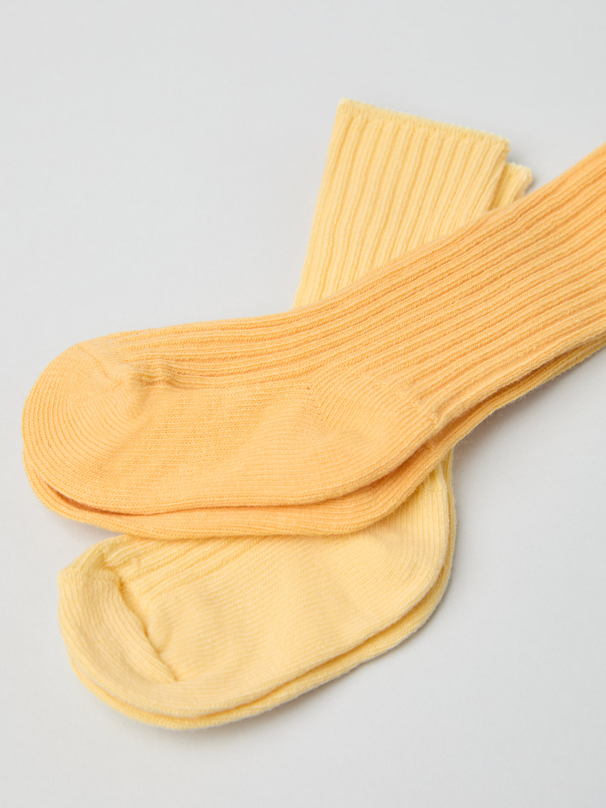 Täydennä sukkalaatikkoa kahden parin pakkauksella vauvan yksivärisiä sukkia. Pehmeää luomupuuvillaa. Sukissa on pehmeä, taitettava ja hankaamaton resori.