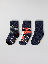 Kolmen parin pakkaus sukkia. Pehmeää luomupuuvilla. Jokaisessa parissa on ainutlaatuinen kuvio ja ne sopivat hyvin yhteen malliston muiden vaatteiden kanssa.