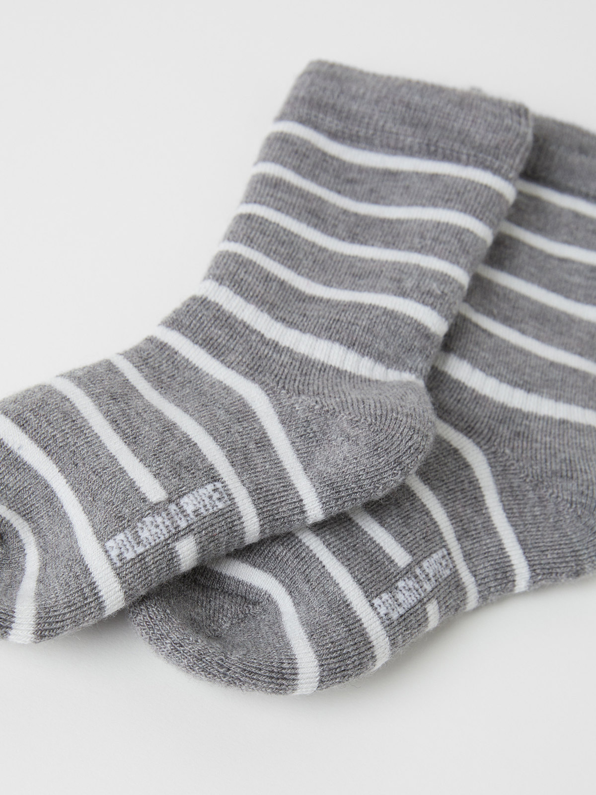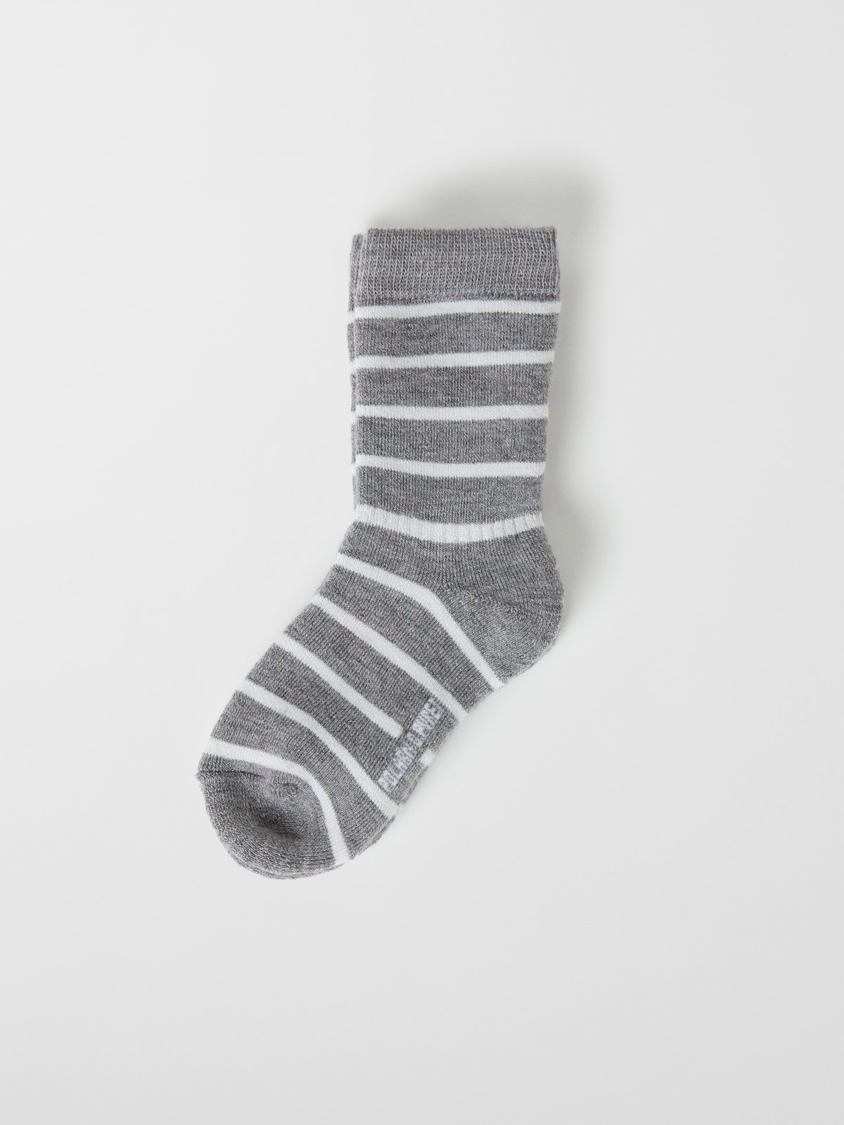 Raidalliset sukat pehmeää villafroteeta. Pitää pienet jalat lämpiminä. Sukissa on klassinen raitakuosimme. Koko on merkitty varren sisäpuolelle. Tilaa on myös lapsen nimelle. Helppo pitää järjestyksessä!