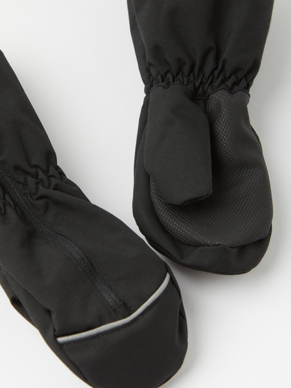Tuulenpitävät hanskat vedenpitävää materiaalia. Pitkä, kätevä vetoketju helpottaa pukemista ja riisumista.