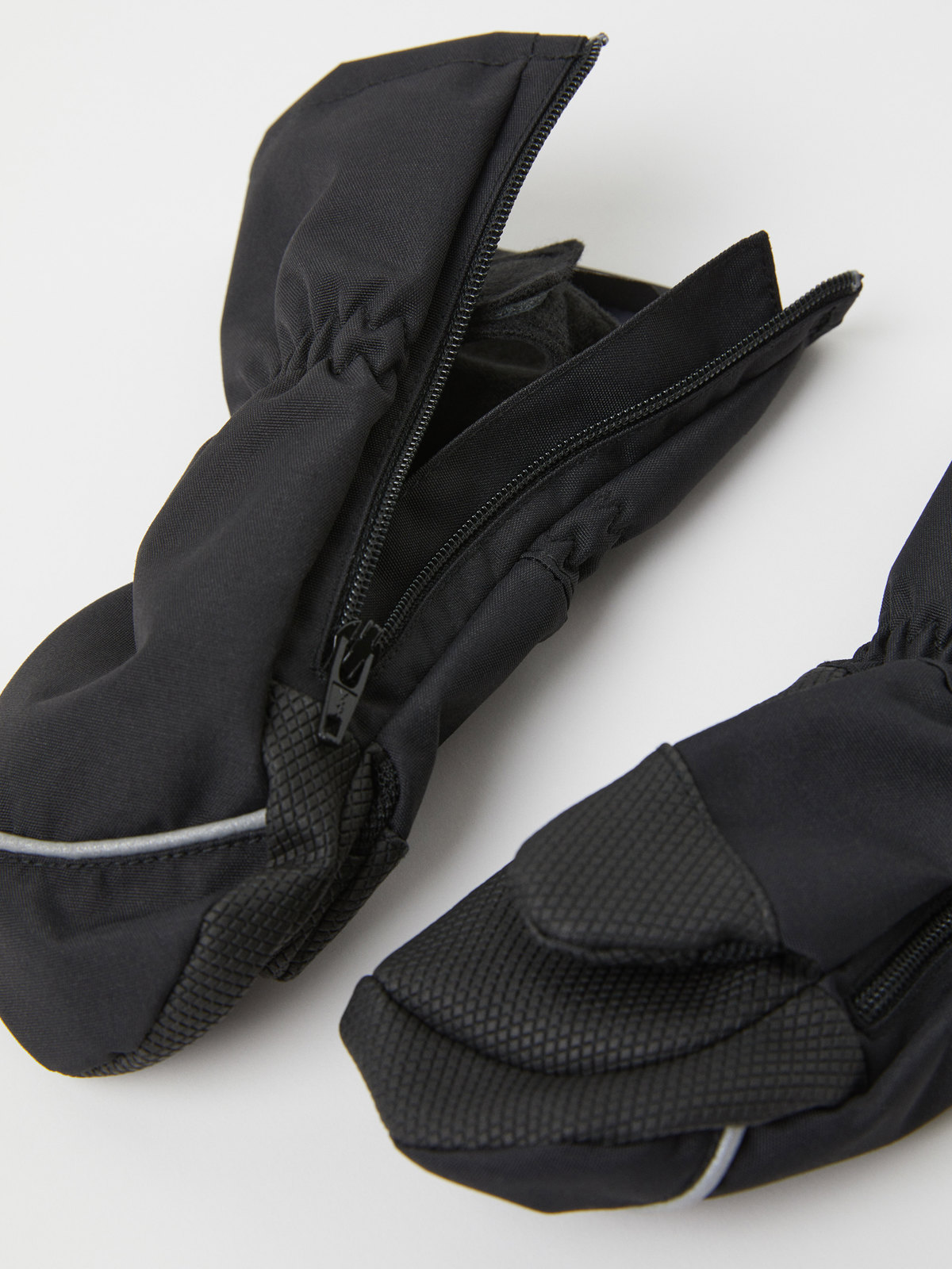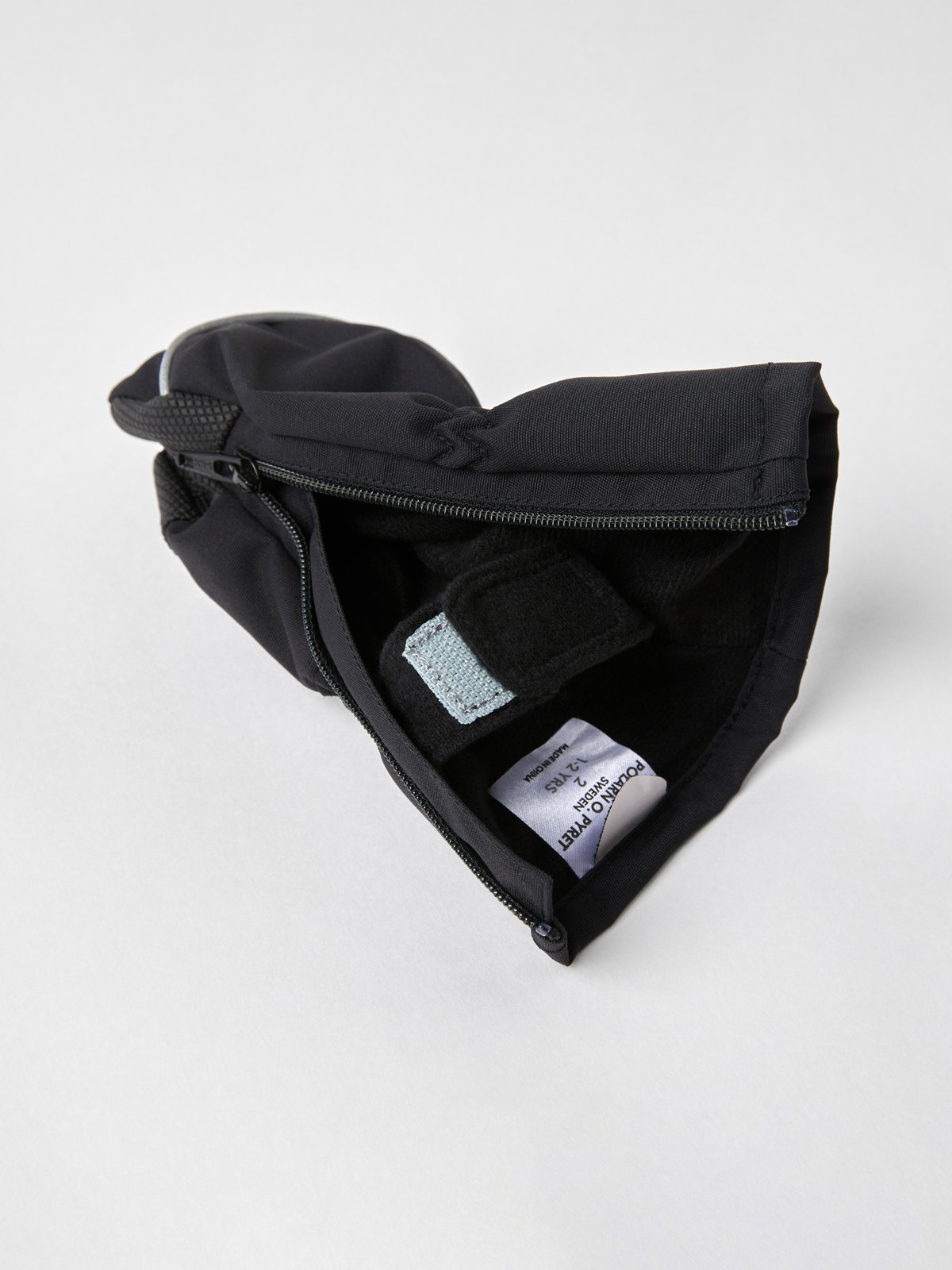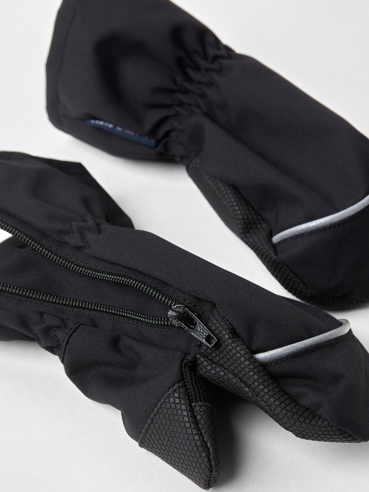 Tuulenpitävät kuorihanskat. Hanskoissa on sivussa vetoketju, joka helpottaa pukemista. Hanskoissa on päällä näkyvät heijastinnauhat ja kämmenpuolella pitävä vahvikekangas. Hanskojen sisäpuolella on lisäksi joustavat ja pehmeät fleecenauhat, jotka voi kietaista ranteen ympärille tarranauhan avulla, jotta hanskat pysyvät käsissä. Vetoketju ei ole vedenpitävä.
