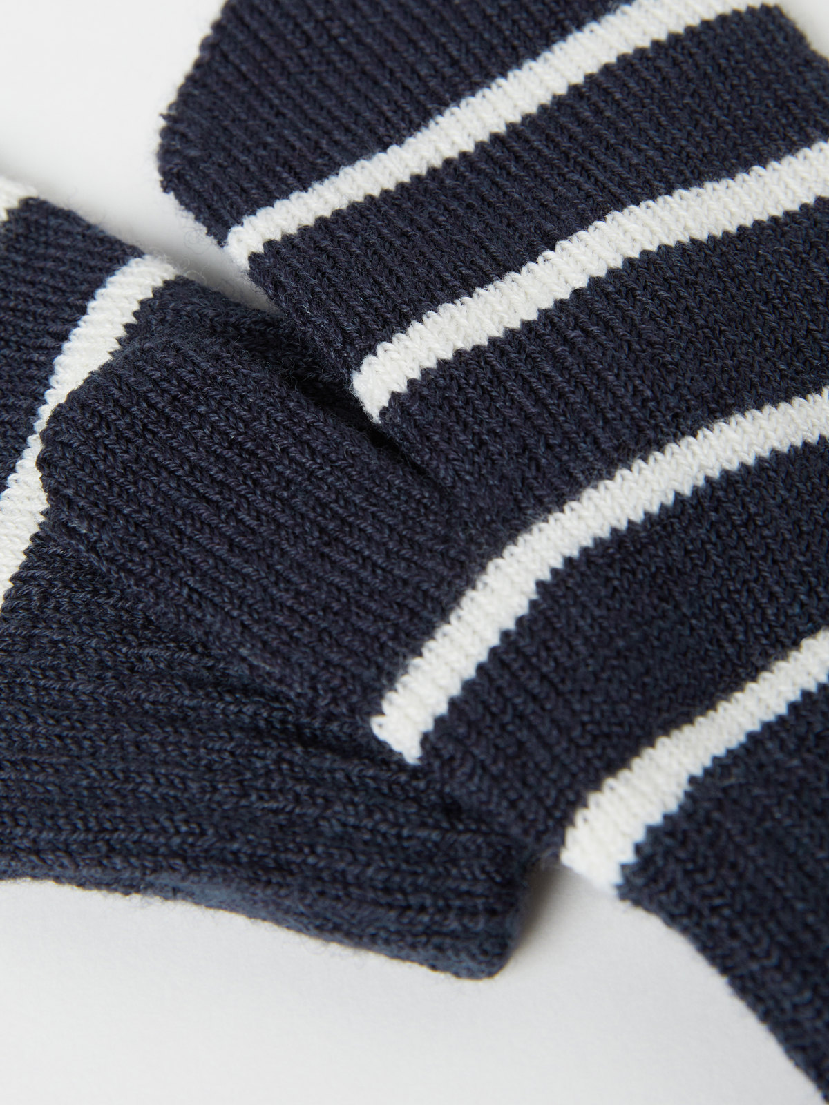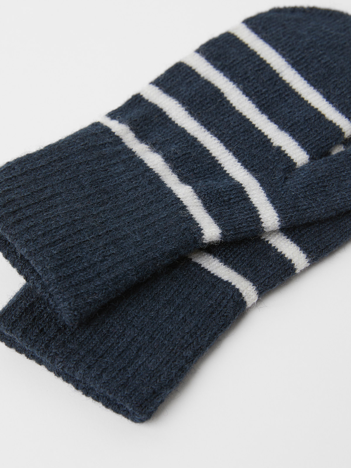 Raidalliset neulotut lapaset villasekoitteesta. Lapasissa on klassinen raitamme ja ne mukautuvat käden kokoon. Koko 0 on ilman peukaloa.