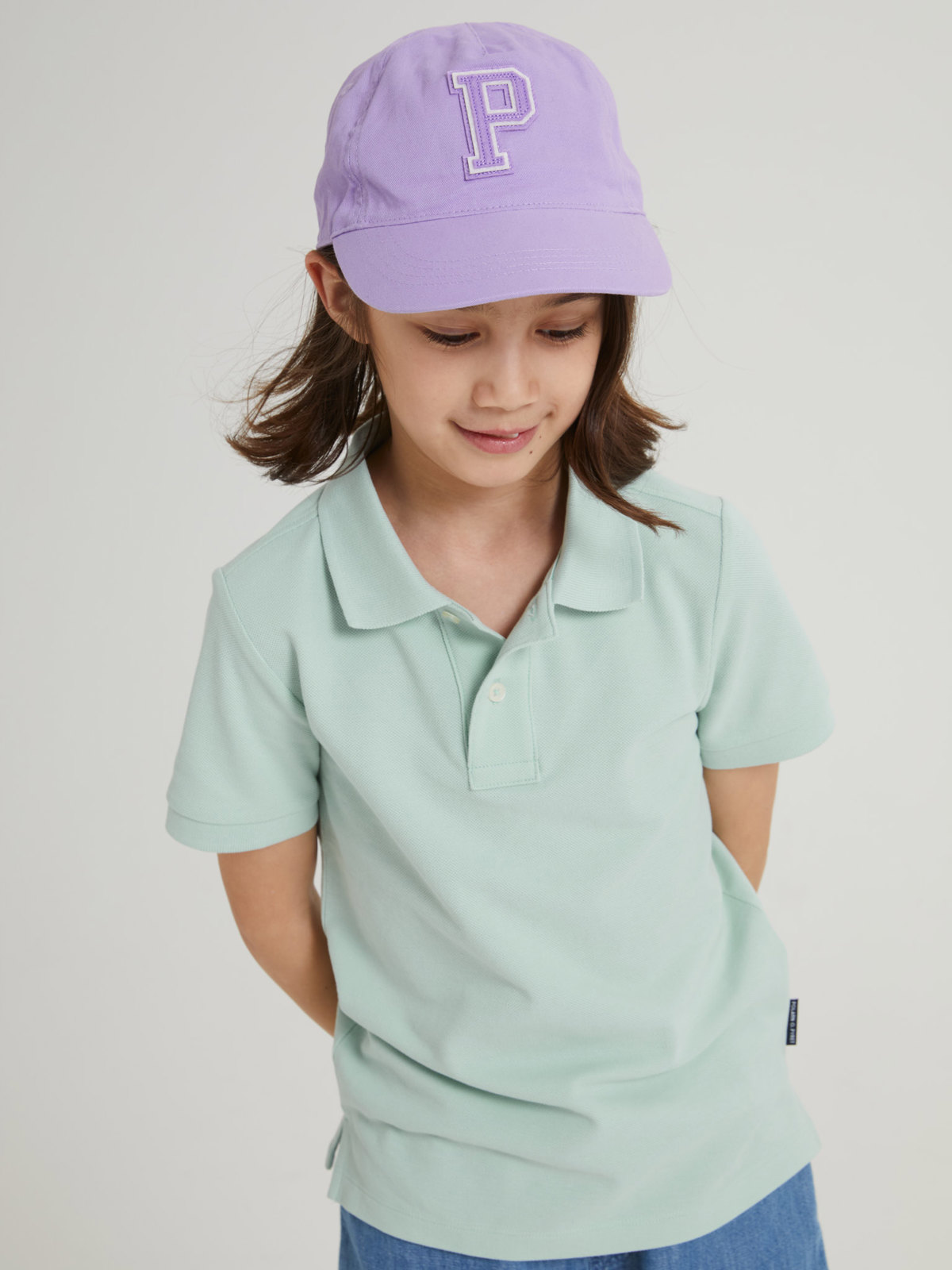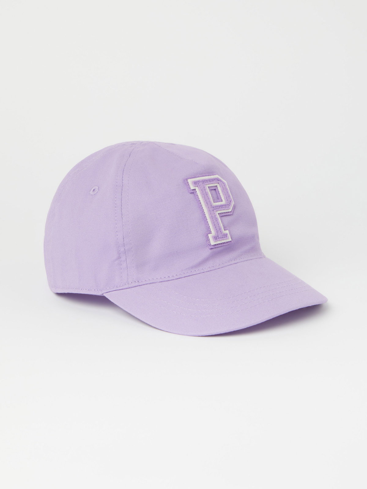 Klassinen lippalakki P-applikoinnilla. Uusi ihana väri. Lippalakki on valmistettu 100 % luomupuuvillasta ja siinä on brodeeratut tuuletusreiät.
