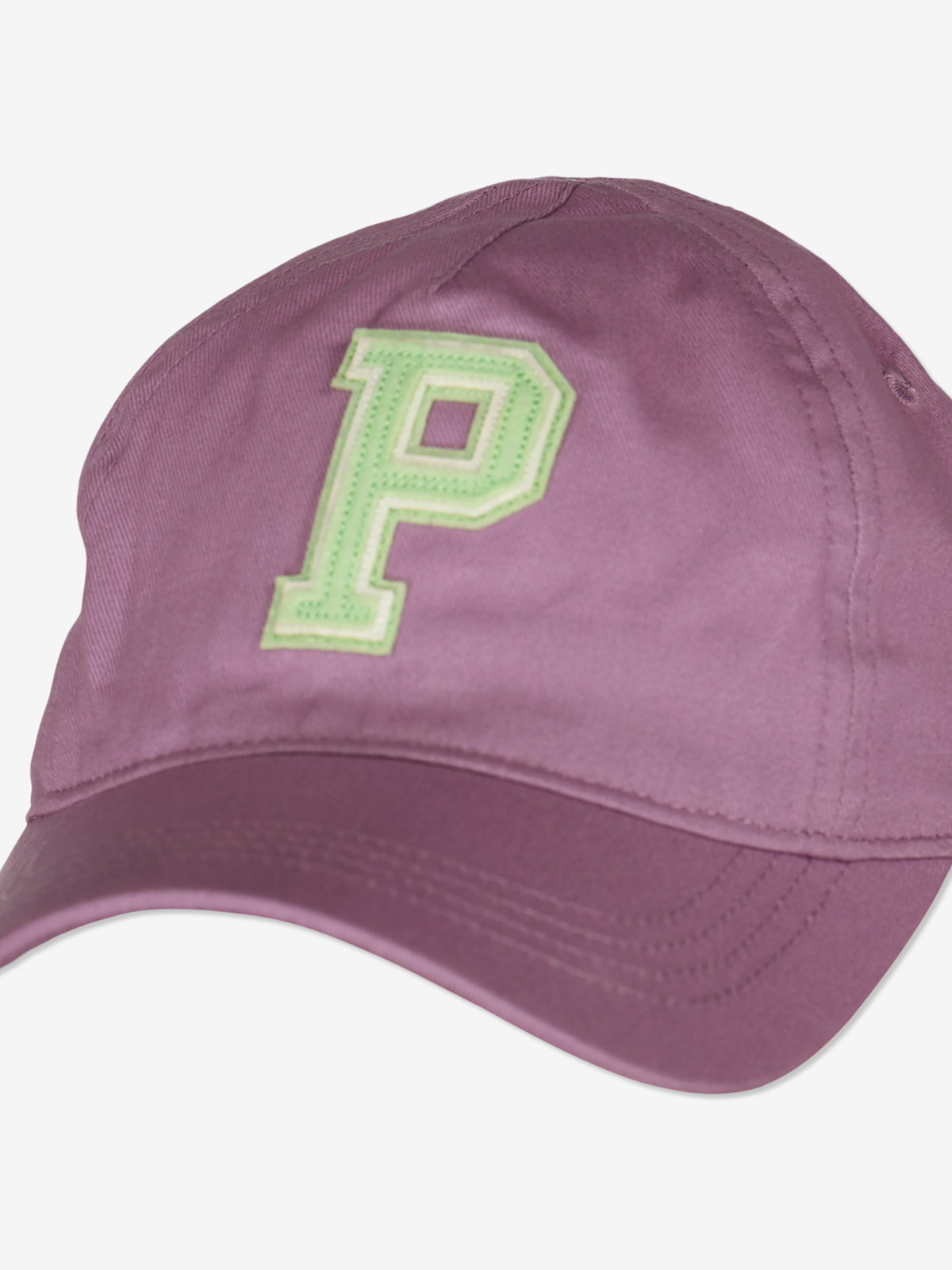 Klassinen lippalakki P-applikoinnilla. Uudet ihanat värit. Lippalakki on valmistettu 100 % luomupuuvillasta ja siinä on brodeeratut tuuletusreiät. Kokoa voi säätää takana olevan tarranauhan avulla.