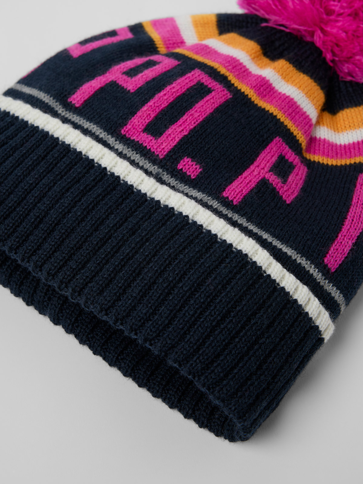 Neulottu pipo lämpimästä ja pehmeästä villasekoitteesta, jossa on kaunis tupsu ja lämmittävä fleecevuori. Villan ansiosta pipo säätelee kehon lämpötilaa ja lämmittää myös märkänä. Pipossa on kontrastivärisiä yksityiskohtia ja iso logo pään ympäri.
