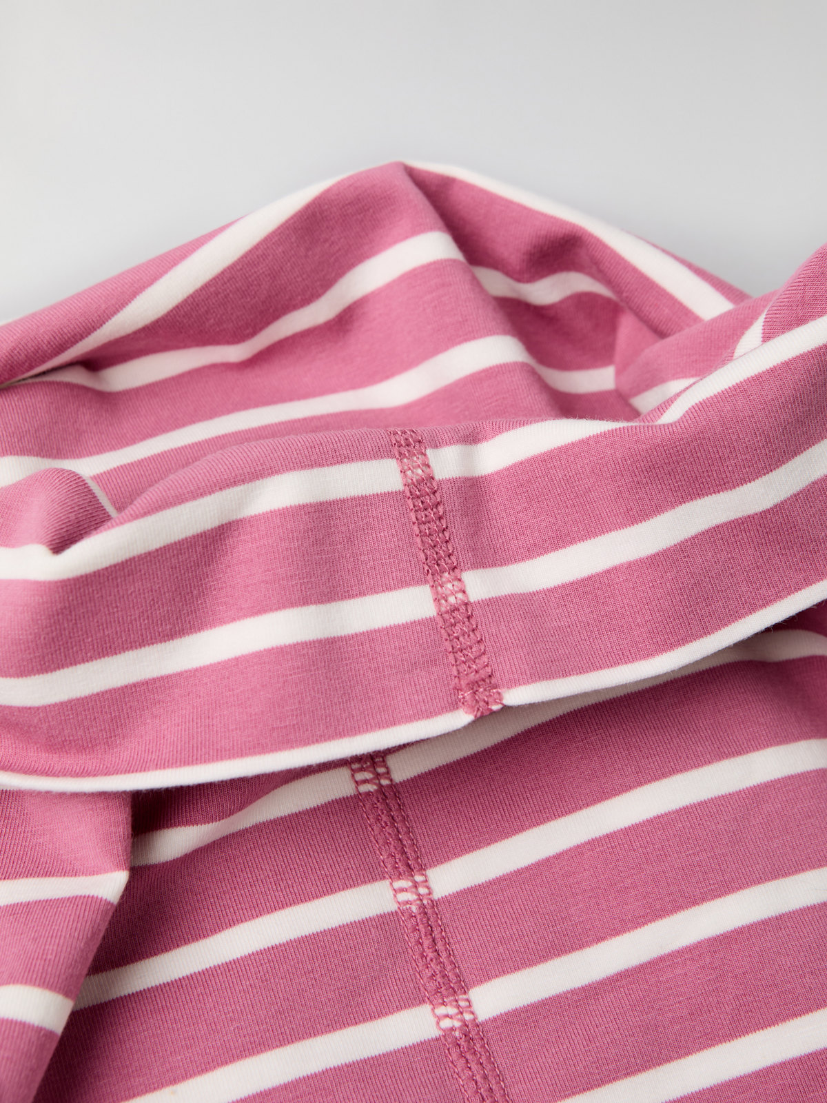 Ohut tuubihuivi pehmeää luomupuuvillaa. Tuubihuivissa on klassinen raitakuosimme ja se sopii täydellisesti takin tai haalarin alle antamaan lisälämpöä kylminä päivinä.