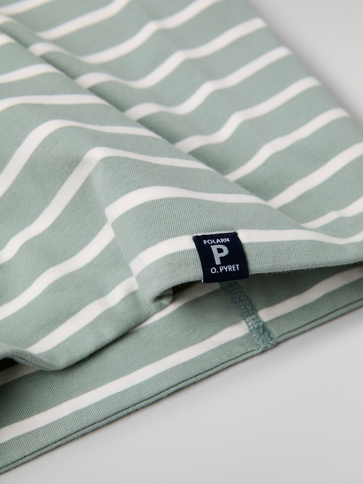 Ohut tuubihuivi pehmeää luomupuuvillaa. Tuubihuivissa on klassinen raitakuosimme ja se sopii täydellisesti takin tai haalarin alle antamaan lisälämpöä kylminä päivinä.