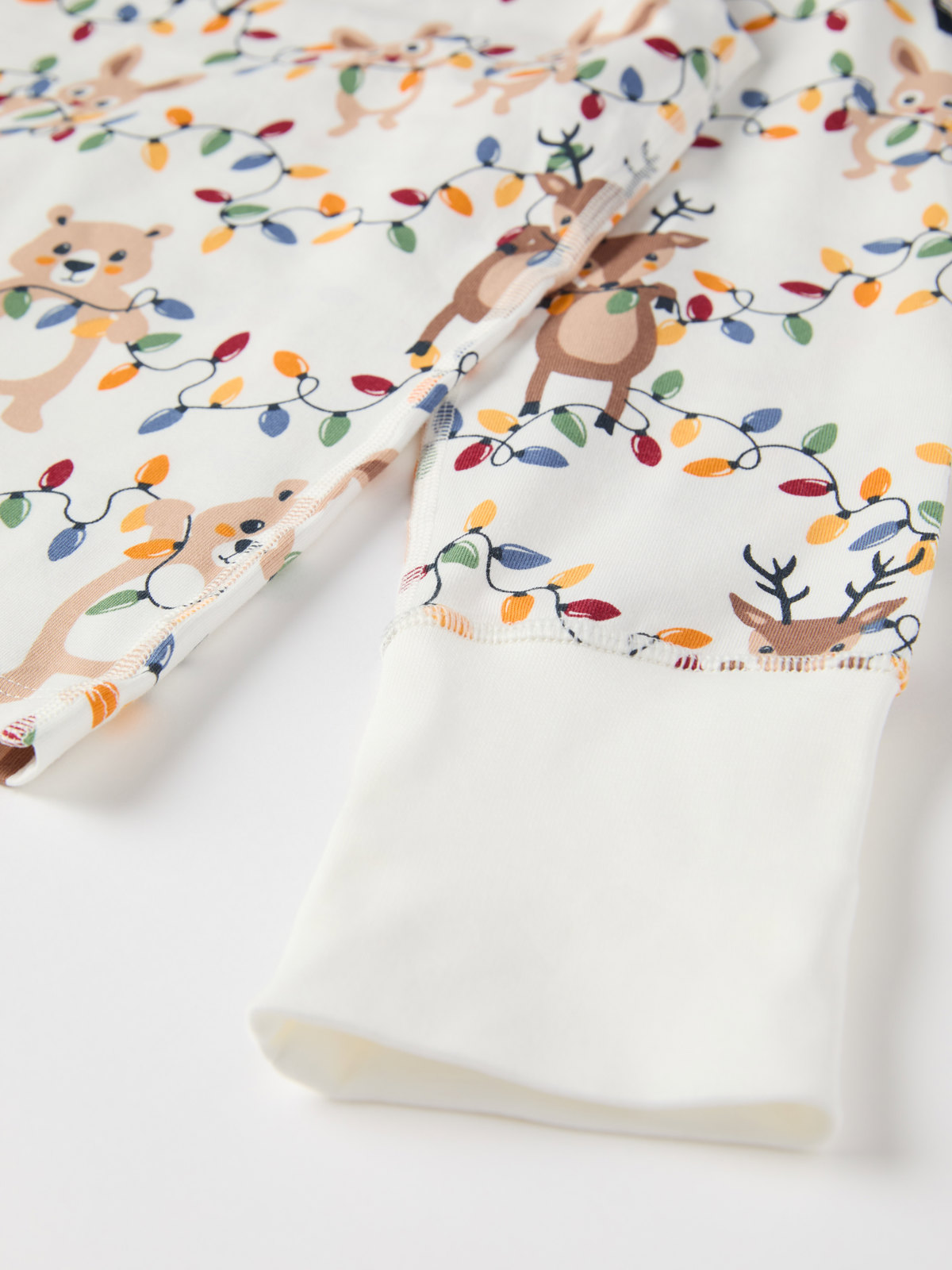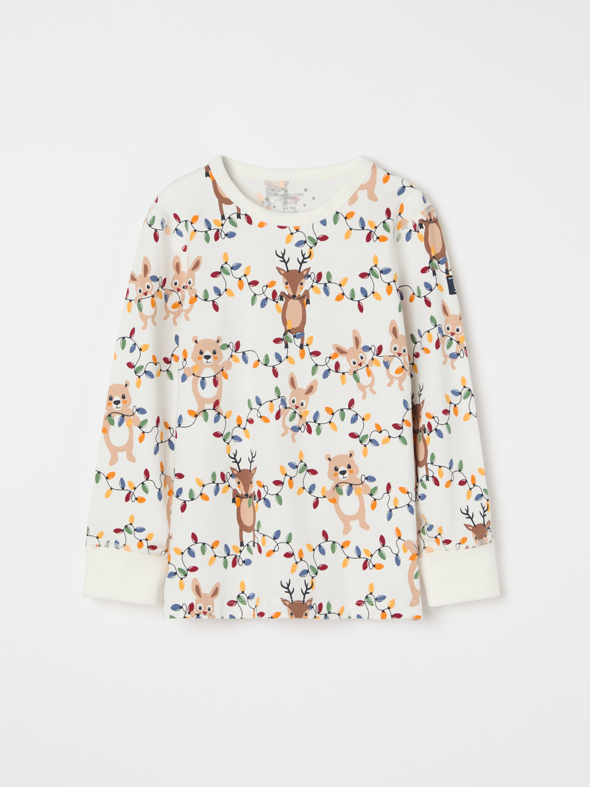 Kaksiosainen pyjama pehmeää luomupuuvillaa. Ihana talvikuvio. Paidan hihansuissa on erityspitkät resorit, jotka voi taittaa ylös ja alas. Housuissa on joustava vyötärö ja erittäin pitkät resorit lahkeensuissa.