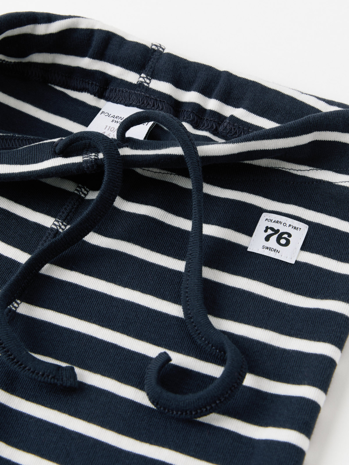 Raidalliset housut 100 % luomupuuvillaa. Housuissa on klassinen raitakuosimme sekä joustava vyötärö, jota voi säätää kiristysnauhalla. Pehmeät resorit lahkeensuissa.