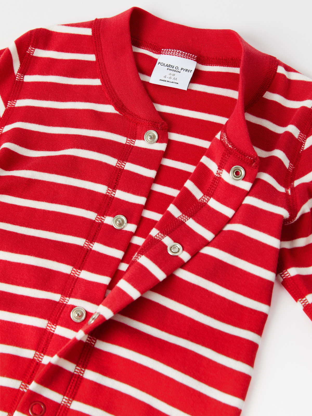 Raidallinen haalari perheen pienimmille, 100 % luomupuuvillaa. Haalarissa on klassinen raitakuosimme. Nepparit pääntieltä lahkeensuulle helpottavat pukemista. Erityispitkät resorit, jotka voi taittaa alas lapsen kasvaessa.