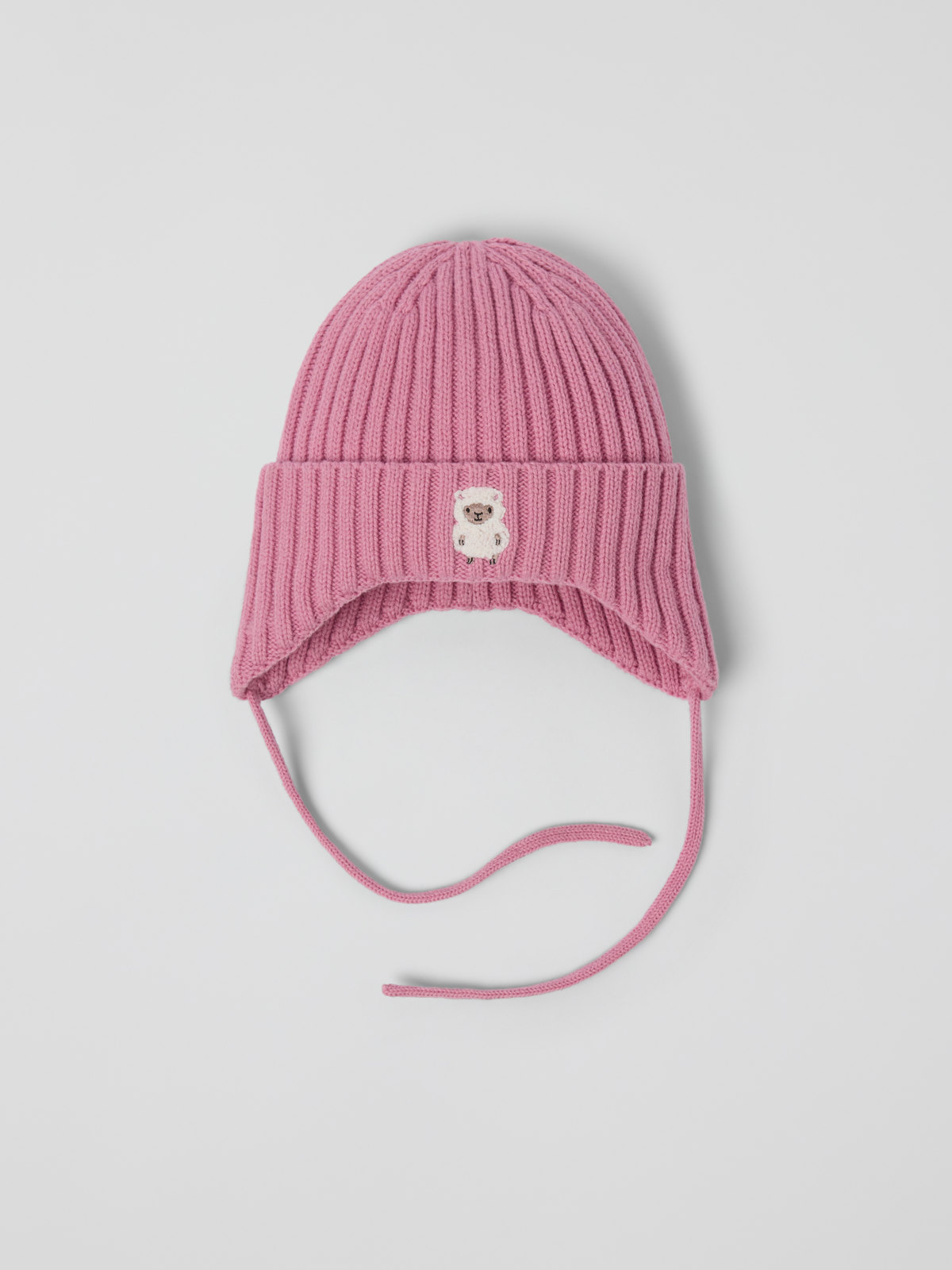 Ribbineulottu pipo pehmeästä ja lämpimästä villa–puuvillasekoitteesta. Pipossa on käänne, jossa on suloinen pieni aplikaatio keskellä edessä. Pipo ulottuu hieman korvien yli ja tarjoaa lisälämpöä sekä mukavan istuvuuden. Solmittavat nauhat pitävät pipon hyvin paikoillaan.