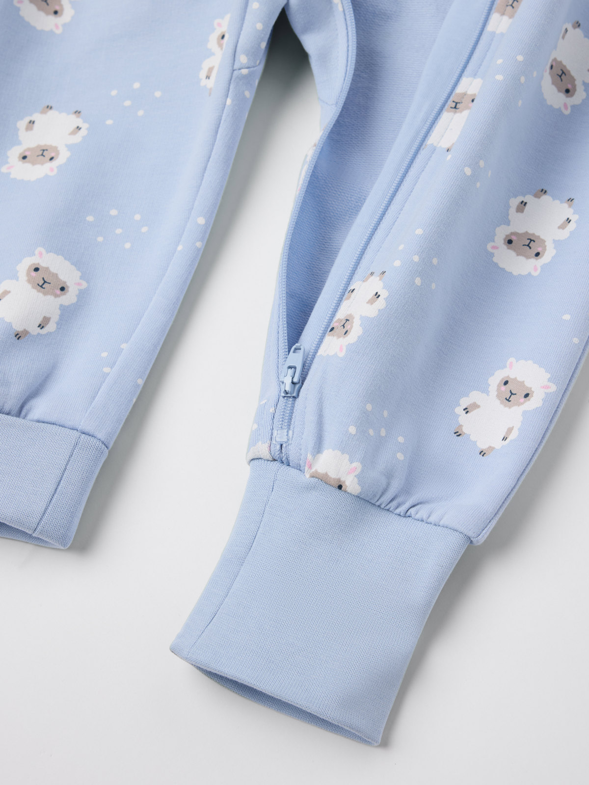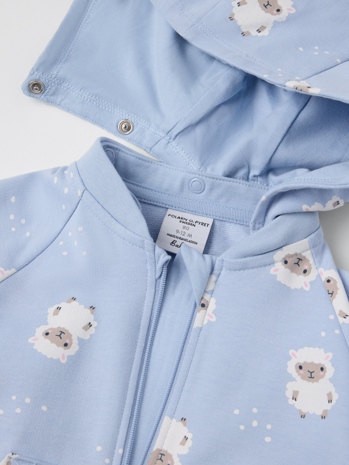 Vauvan pehmeä haalari luomupuuvillaa. Kaunista collegekangasta harjatulla sisäpinnalla. Haalarissa on kengurutasku. Kiinteän hupun vuori on pehmeää puuvillatrikoota, jossa on klassinen raitakuosimme. Pitkä vetoketju pääntieltä lahkeensuulle helpottaa pukemista. Vetoketjussa on suoja, jotta se ei hankaa leukaa ja poskia. Erittäin pitkät ribbiresorit hihan- ja lahkeensuissa voi taittaa alas lapsen kasvaessa.