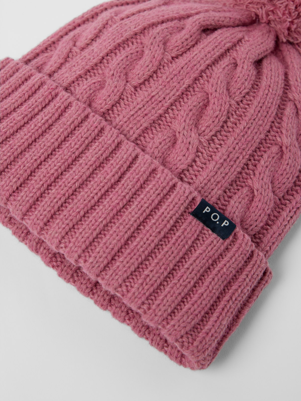 Palmikkoneulottu pipo lämpimästä villa–polyesterisekoitteesta, jossa on suloinen tupsu ja pehmeä käänne. Villan ansiosta pipo säätelee kehon lämpötilaa ja lämmittää myös märkänä, kun taas polyesteri auttaa siirtämään ylimääräistä lämpöä ja kosteutta pois iholta.