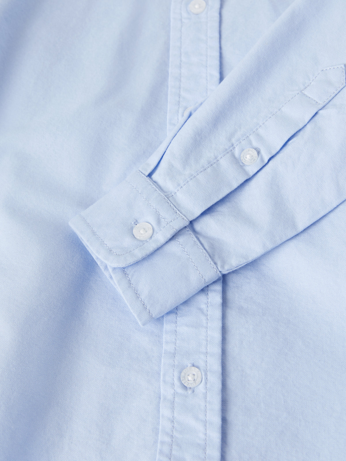 Oxford-paita nappikauluksella. 100 % luomupuuvillaa. Paidassa on kaarrokeleikkaus ja vastalaskos selässä.