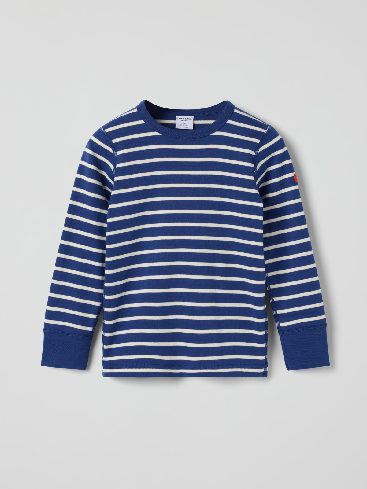 Ribbiresorinen trikoopaita pehmeästä luomupuuvillasta. Paidassa on klassinen raitamme sekä pehmeä ribbiresori pääntiessä ja hihansuissa.