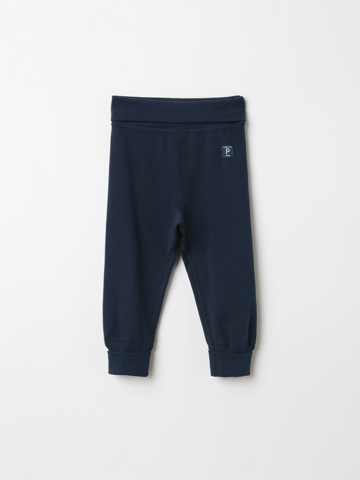 Vastasyntyneen yksiväriset housut luomupuuvillaa. Vyötäröllä ja lahkeensuissa resorit, jotka voi taittaa alas lapsen kasvaessa.