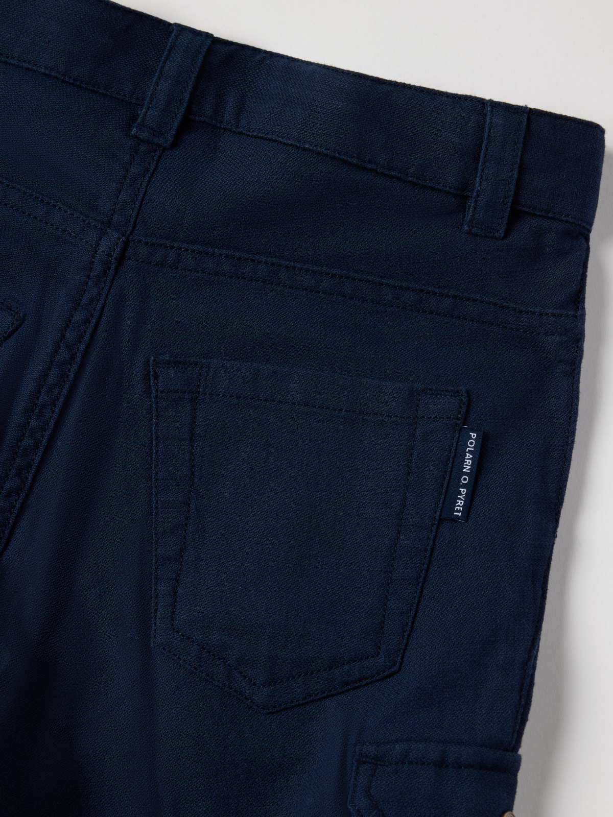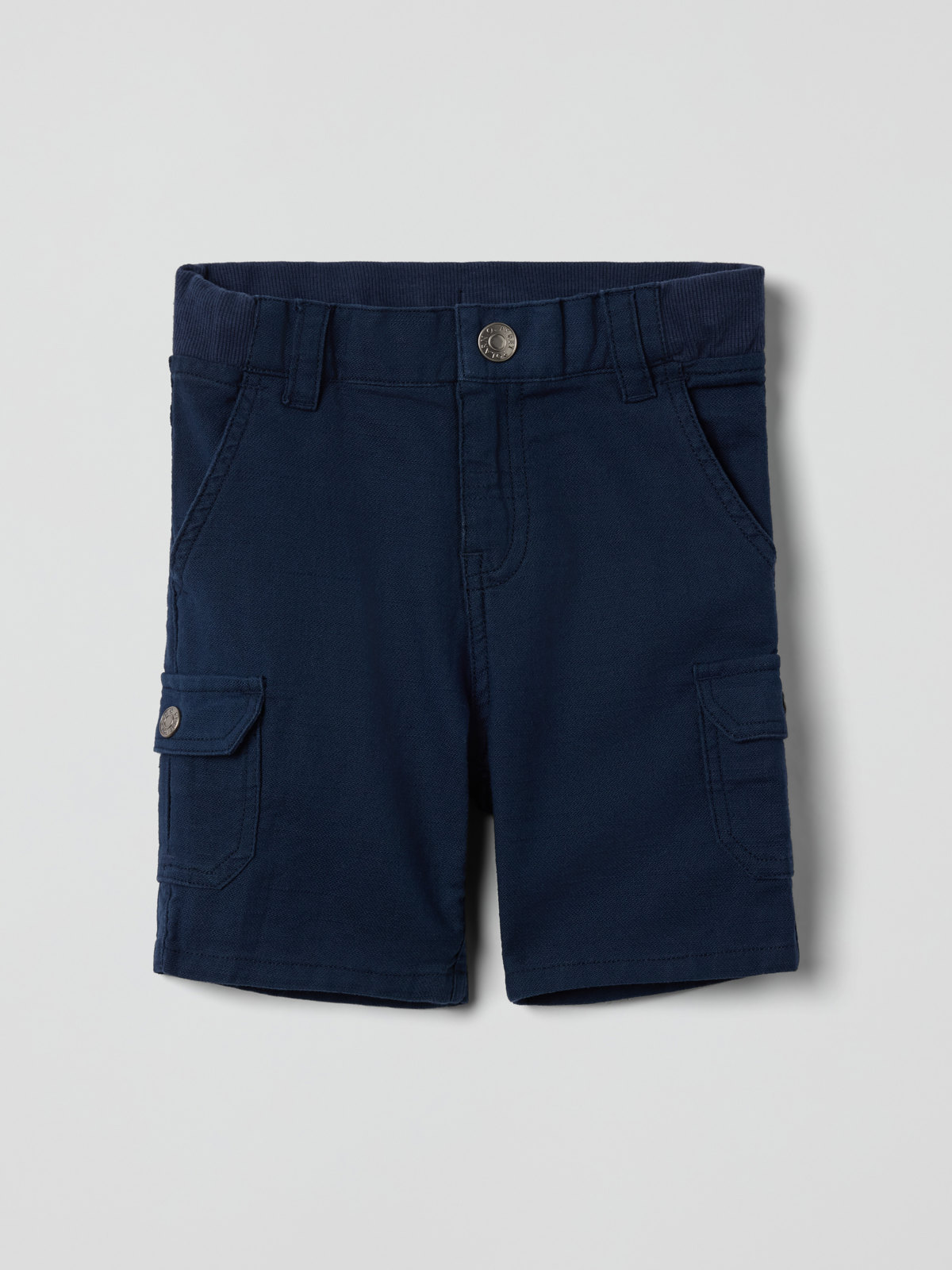 Pehmeät cargoshortsit 100 % luomupuuvillaa – täydelliset ihaniin kesäseikkailuihin! Shortseissa on muotoillut polviosat hyvän istuvuuden takaamiseksi ja taitettavat lahkeensuut. Etu- ja takataskut sekä kaksi reisitaskua, jotka suljetaan neppareilla.