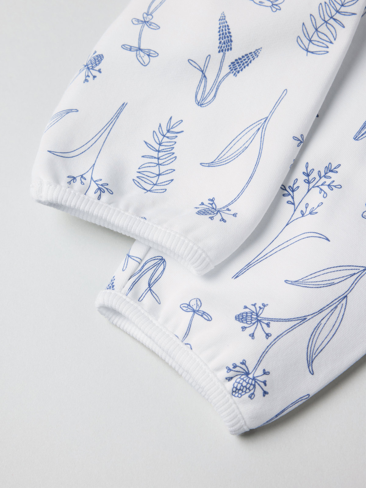 Ohuet ja pehmeät collegehousut luomupuuvillaa – täydelliset lämpimiin päiviin! Housut on kuvioitu kokonaan kukkakuviolla. Kaksi etutaskua, joustava vyötärö ja joustavat lahkeensuut takaavat hyvän istuvuuden.