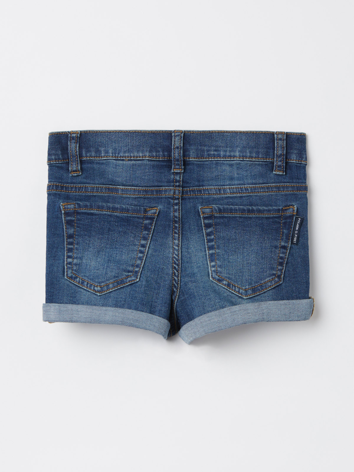 Lyhyet farkkushortsit 100 % luomupuuvillaa. Säädettävä vyötärö ja vyölenkit.