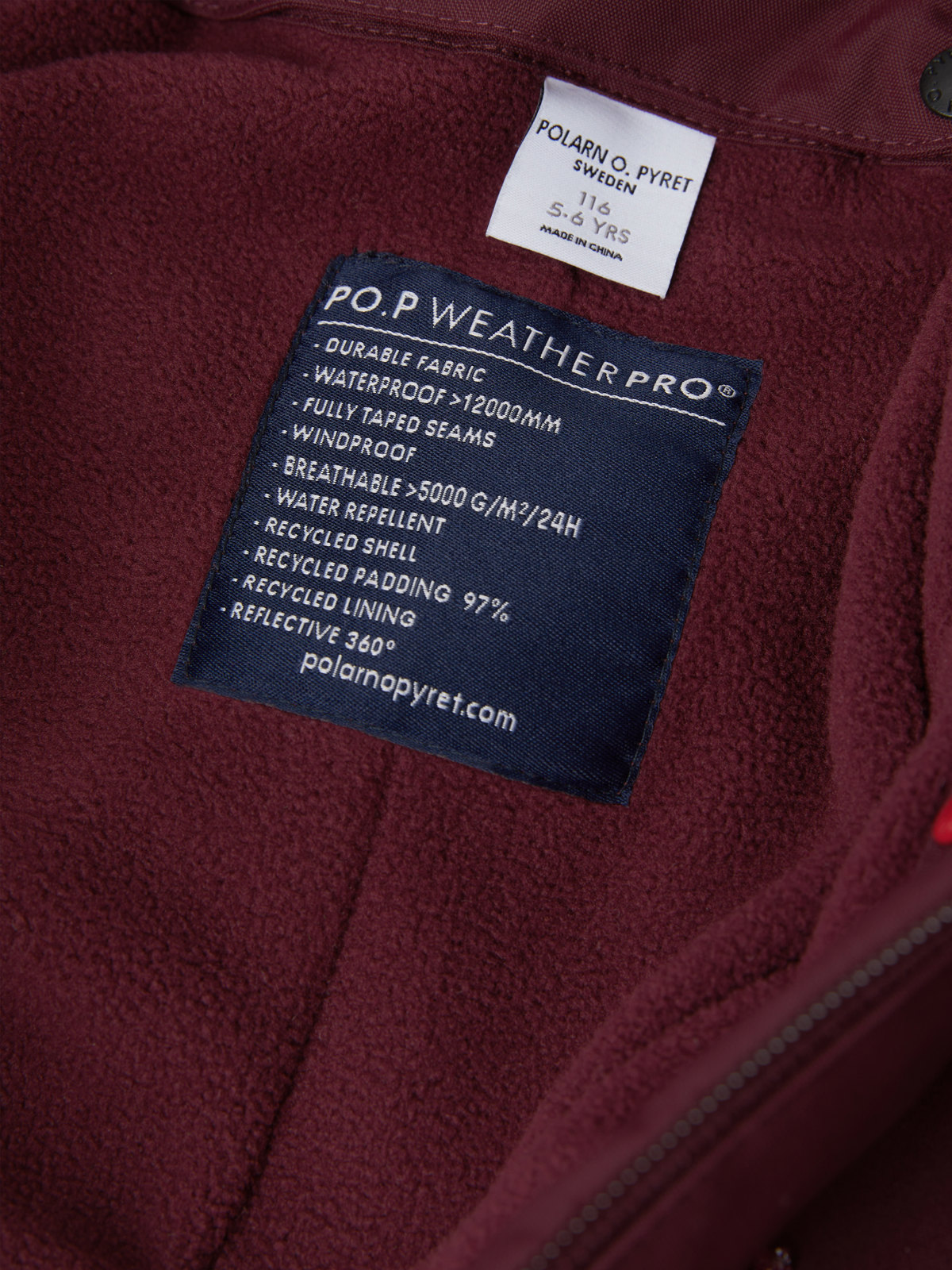 Ulkovaatteet, joissa on merkintä PO.P WeatherPro®, täyttävät kaikki vaatimuksemme teknisille ulkovaatteille, olipa kyse sitten kestävyydestä, vedenpitävyydestä, hengittävyydestä tai lapsiturvallisuudesta.