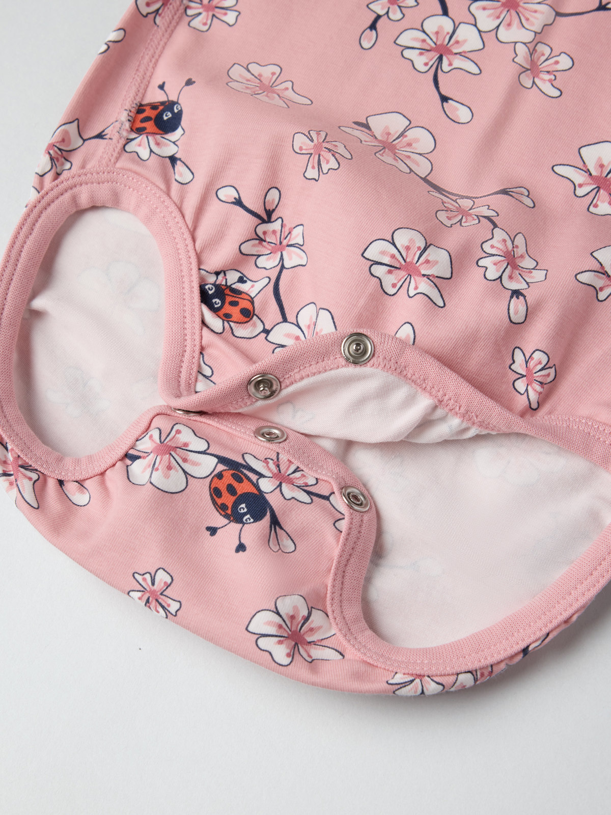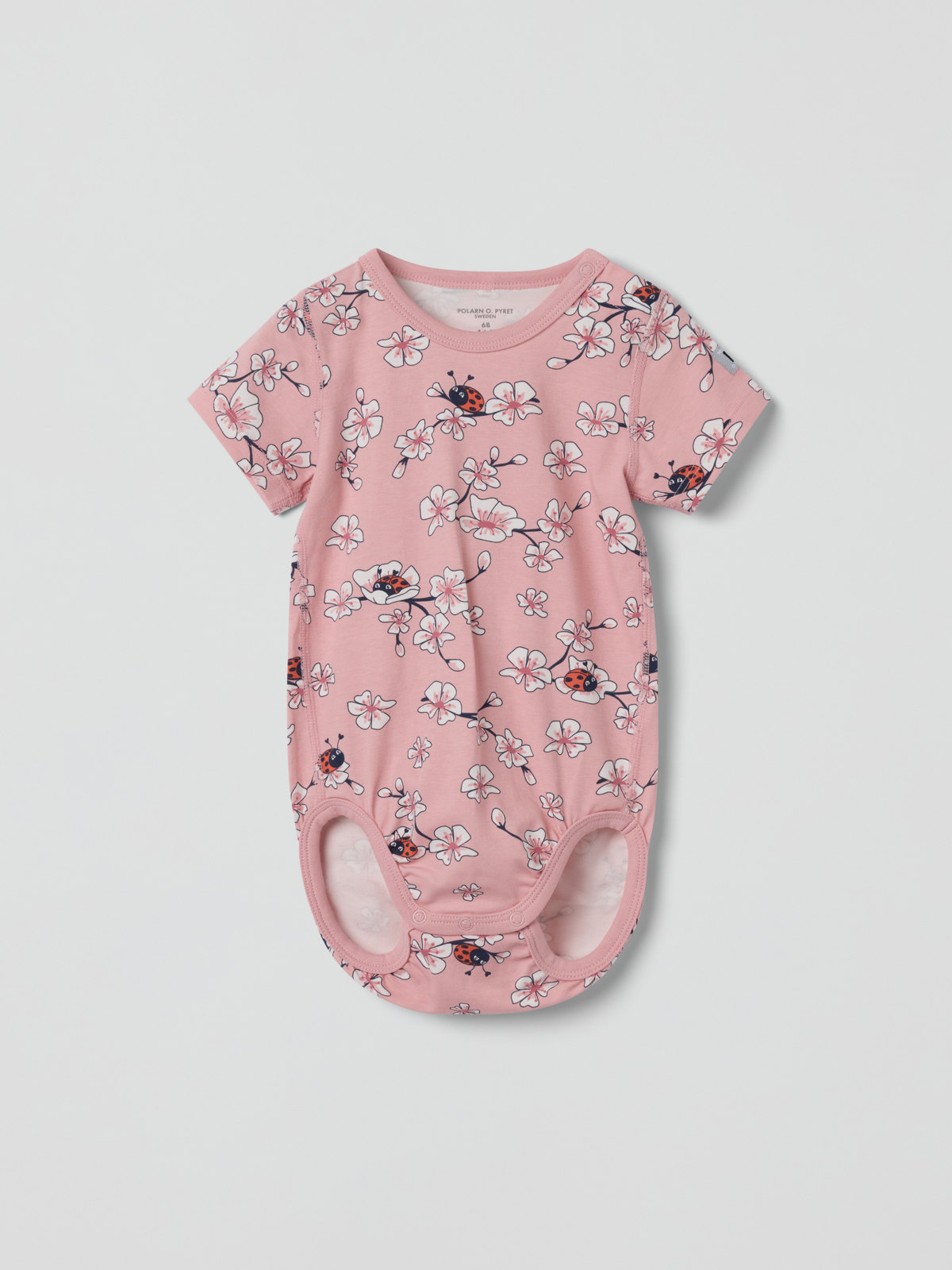 Lyhythihainen body pehmeää luomupuuvillaa. Erittäin pehmeät ja litteät saumat, jotka eivät hankaa herkkää ihoa vasten. Body on kuvioitu kokonaan kukkakuviolla.