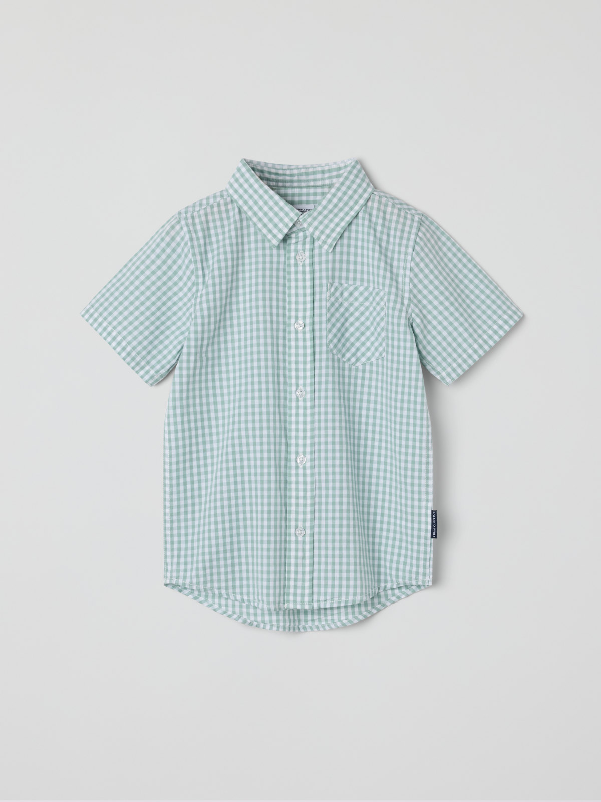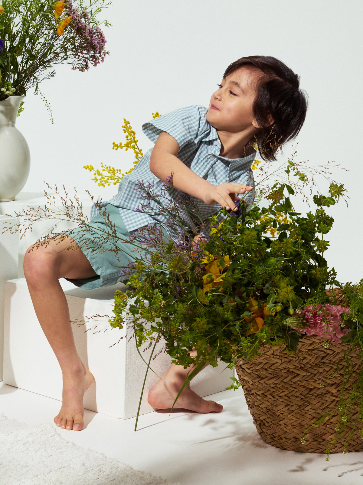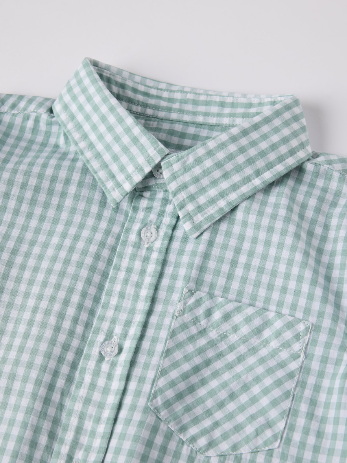 Raidallinen lyhythihainen paita luomupuuvillapopliinia – täydellinen sekä arkeen että kesäjuhliin! Paidassa on rintatasku ja edessä nappikiinnitys.
