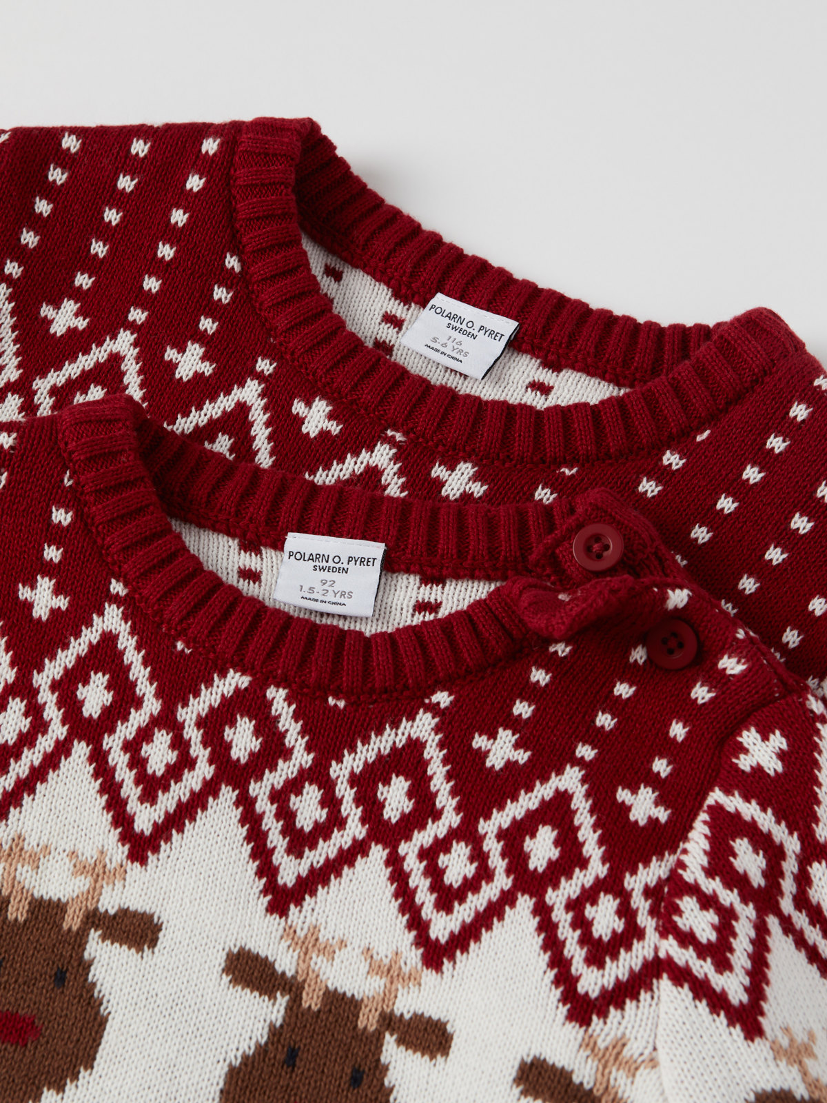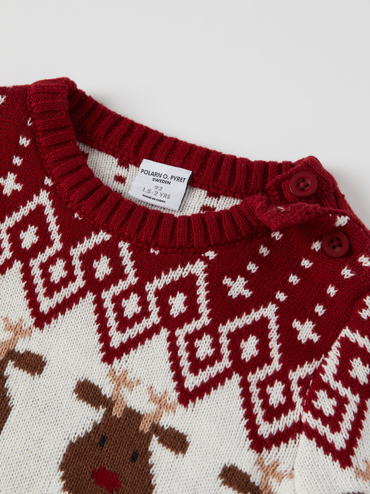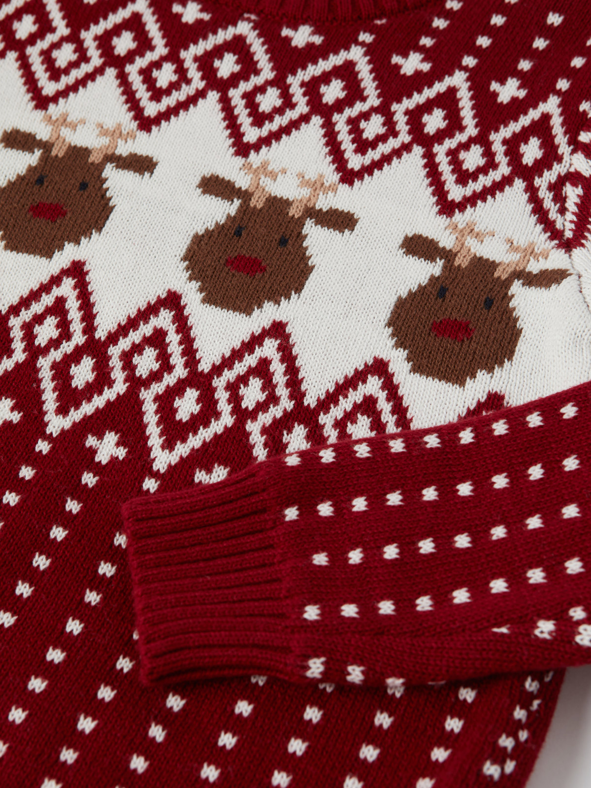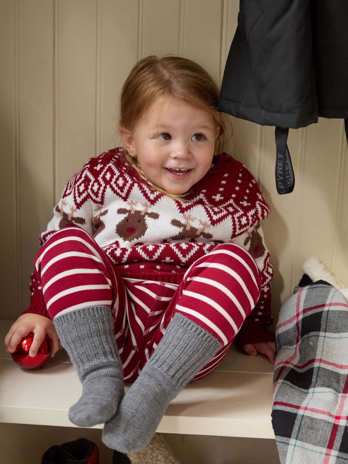Jacquard-neulepaita hienolla talviaiheisella kuviolla. 100 % luomupuuvillaa. Täydellinen joulupaita!