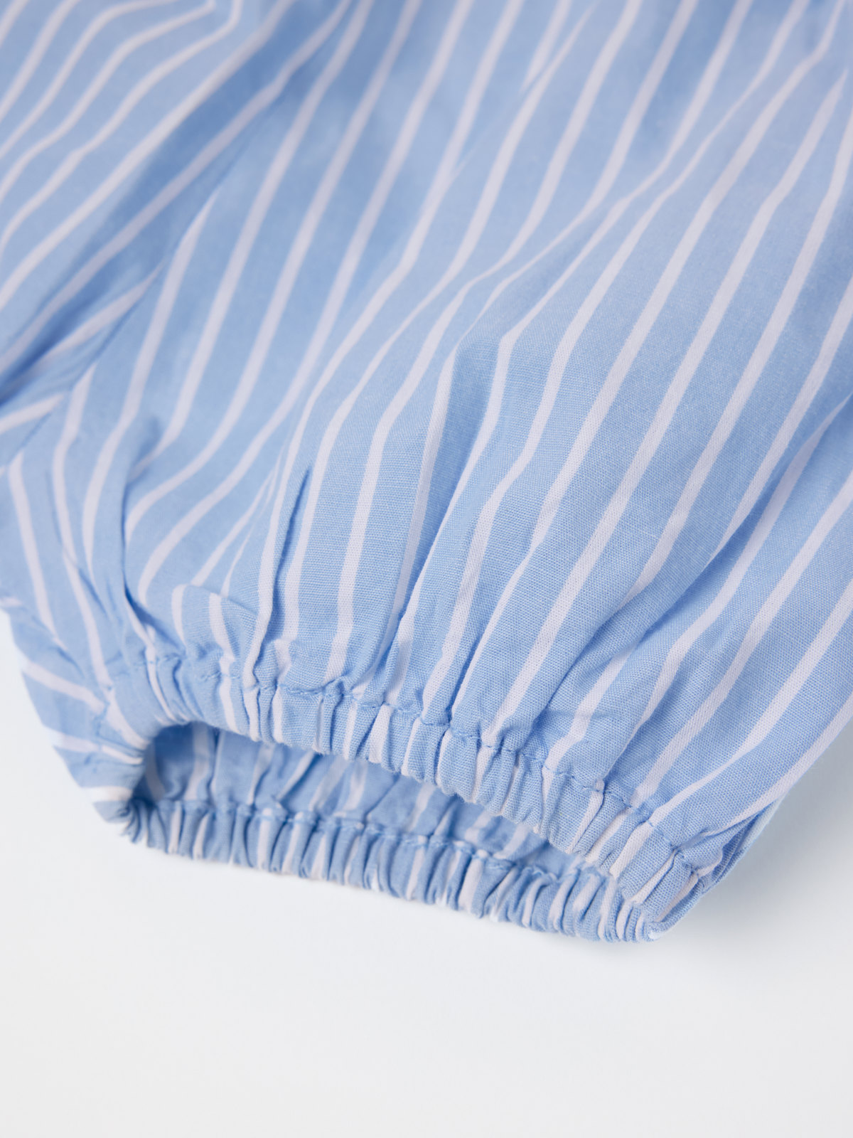 Vauvan paita- ja shortsisetti pehmeää luomupuuvillapopliinia – täydellinen kesän kaikkiin juhliin! Paidan etuosassa on piilonapitus. Shortseissa on joustava vyötärö ja joustavat lahkeensuut, mikä takaa mukavan istuvuuden.