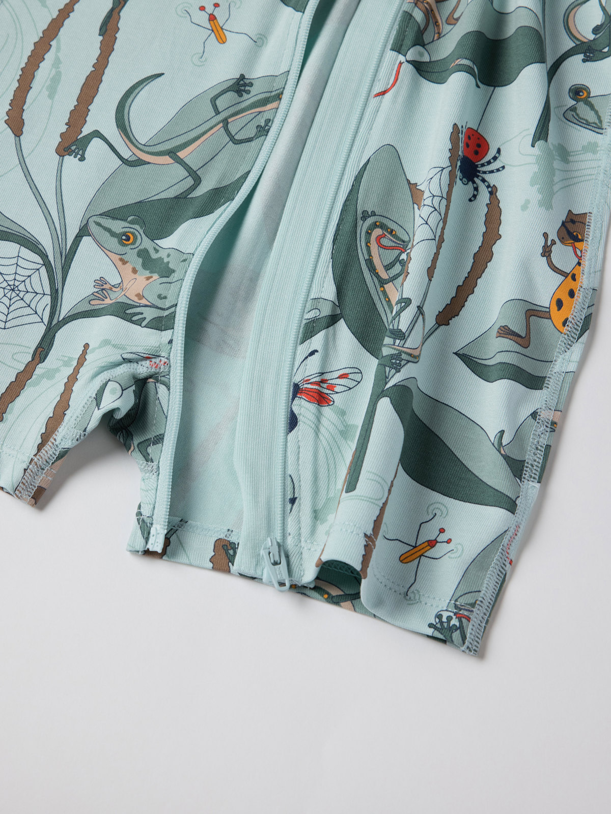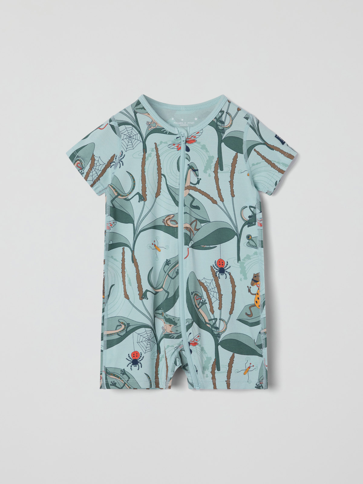 Pyjamahaalari ohutta ja vilpoisaa Tencel™ lyocell trikoota, jossa on erityisen pehmeät saumat. Haalarissa on erittäin pehmeät saumat, jotka ovat hellävaraiset herkälle iholle. Kuvioitu kokonaan liskokuviolla.