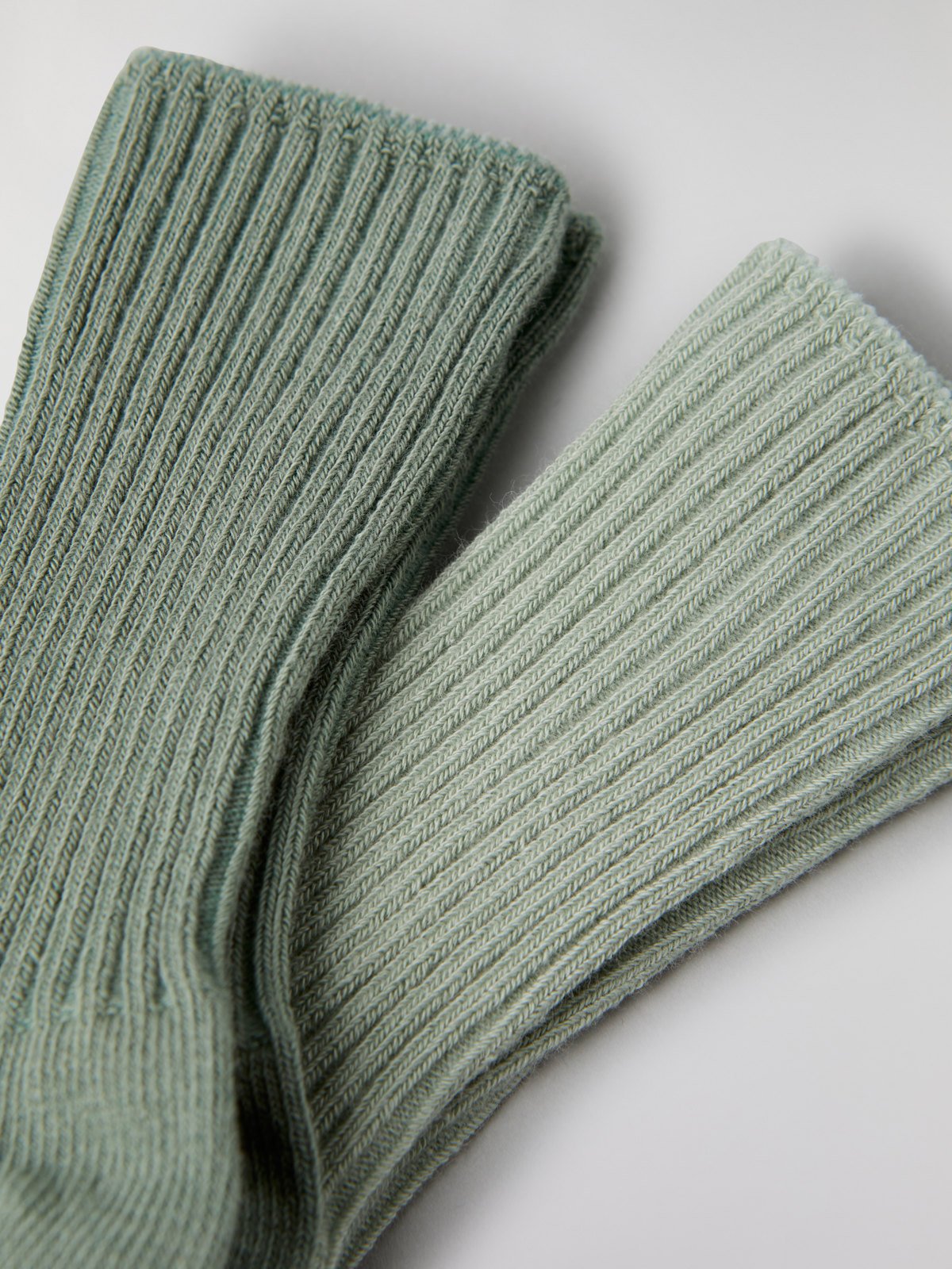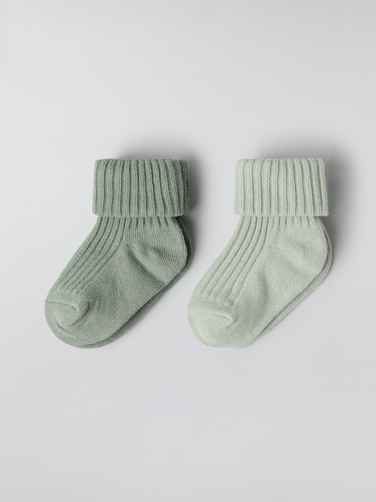 Täydennä sukkalaatikkoa kahden parin pakkauksella vauvan yksivärisiä sukkia. Pehmeää luomupuuvillaa. Sukissa on pehmeä, taitettava ja hankaamaton resori.