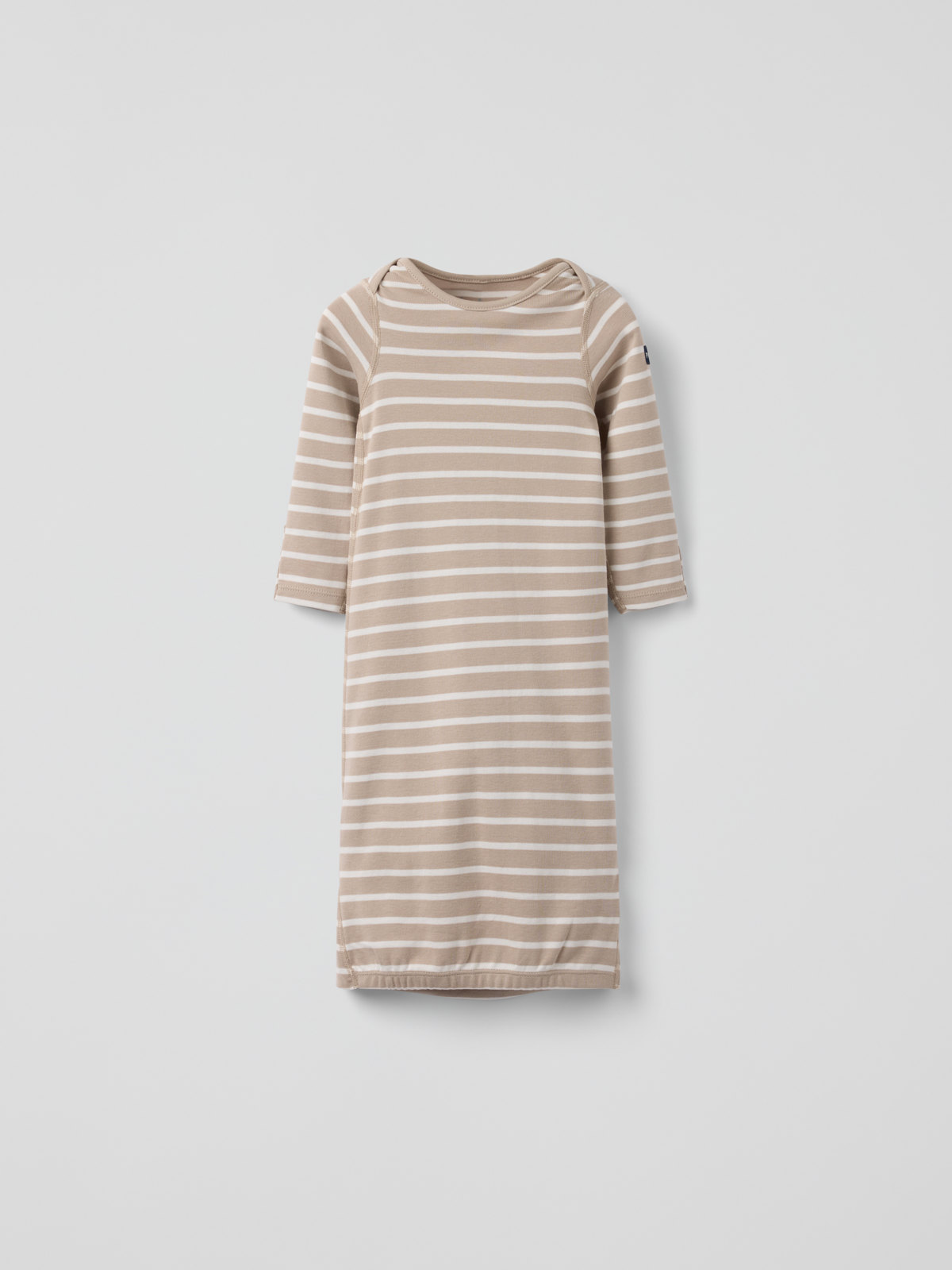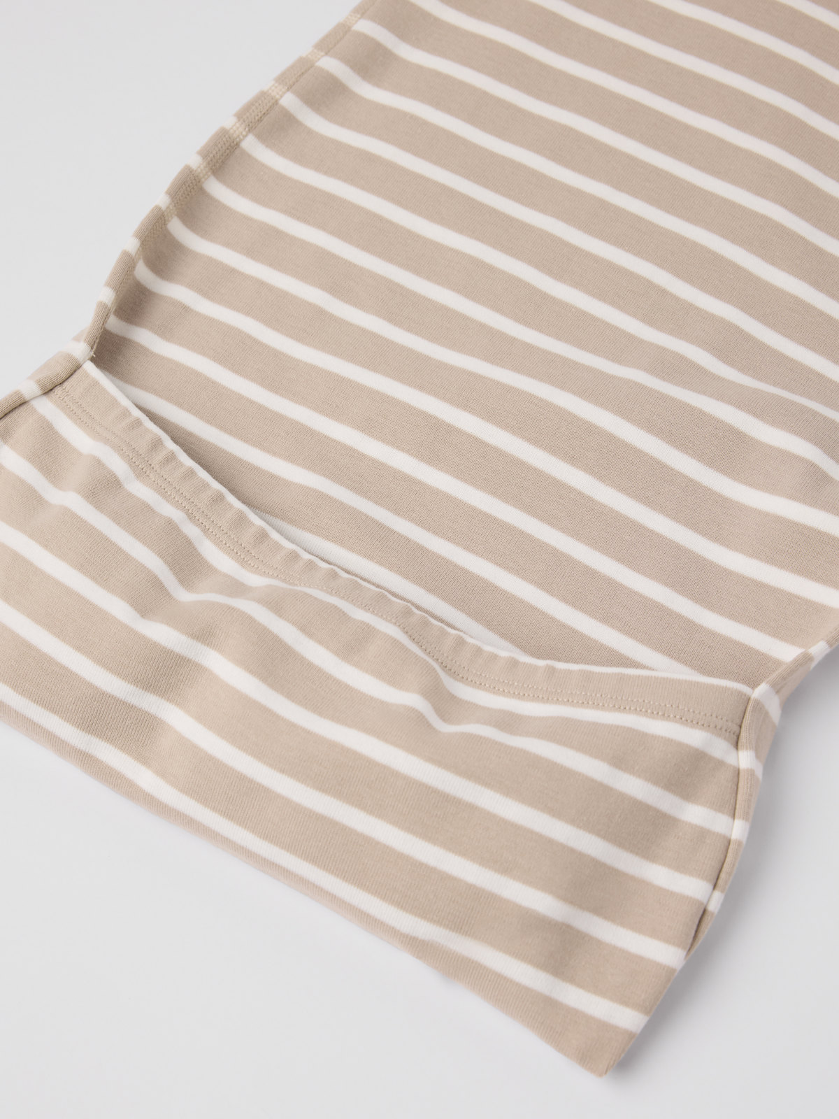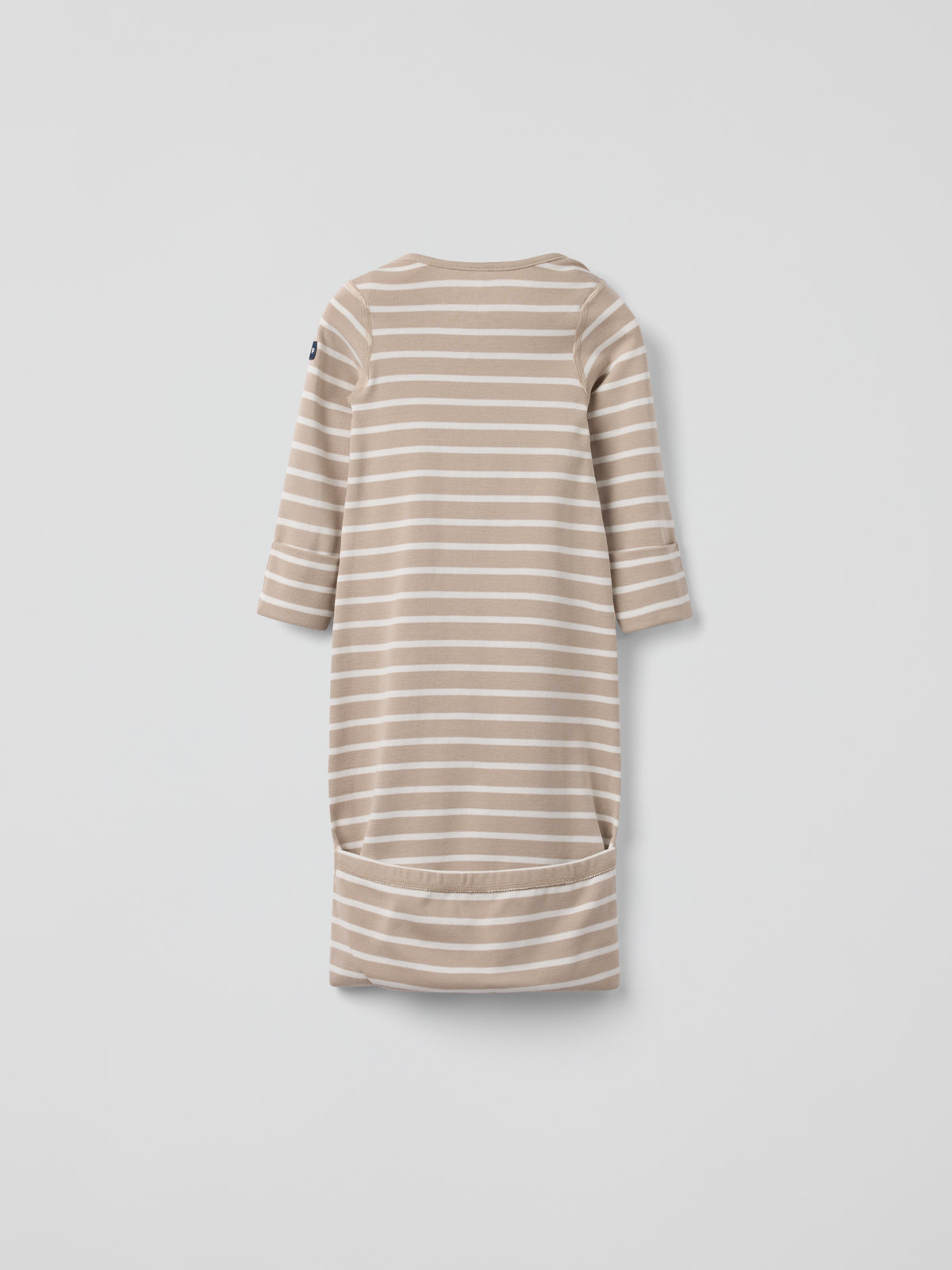Raidallinen unipussi ohuesta puuvillatrikoosta – ihana sekä rattaissa että sängyssä! Unipussissa on pitkät hihat ja kirjekuoripääntie, jotka helpottavat pukemista ja riisumista. Saumat ovat erityisen pehmeät eivätkä ärsytä herkkää ihoa. Helmassa on kuminauha.