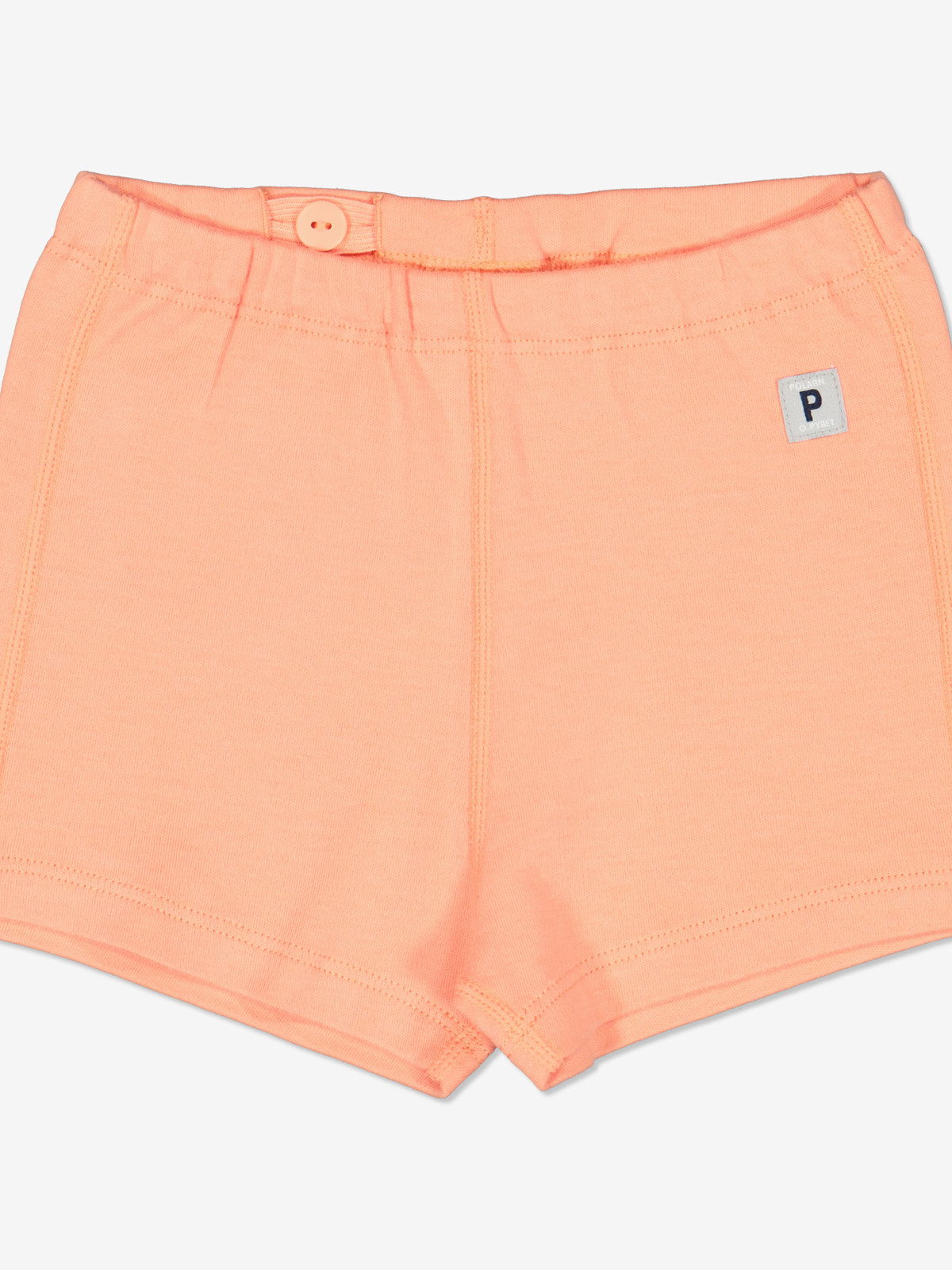 Vauvan yksiväriset shortsit 100 % luomupuuvillatrikoota. Ilmavissa shortseissa on erityisen pehmeät saumat, jotka tuntuvat pehmeältä vauvan herkkää ihoa vasten. Joustavaa vyötäröä voi säätää reikäkuminauhalla.