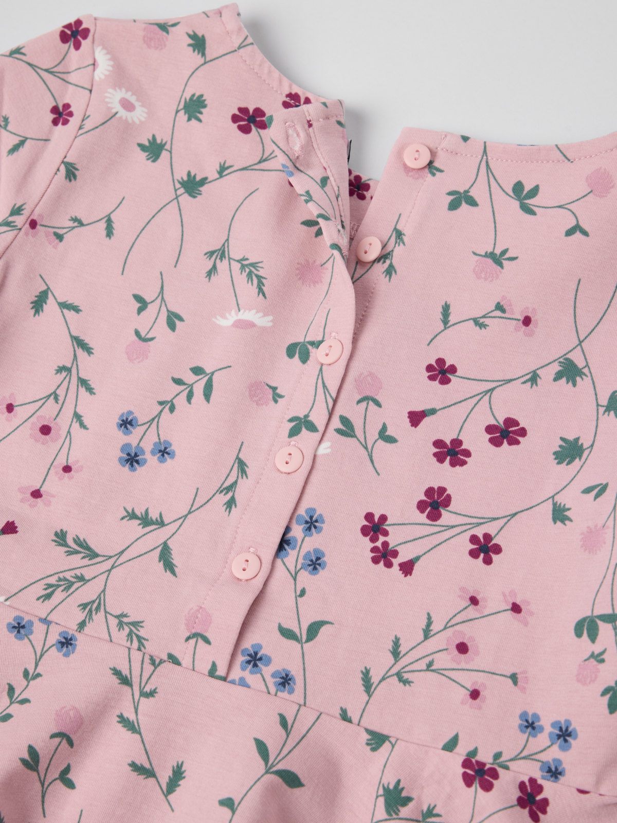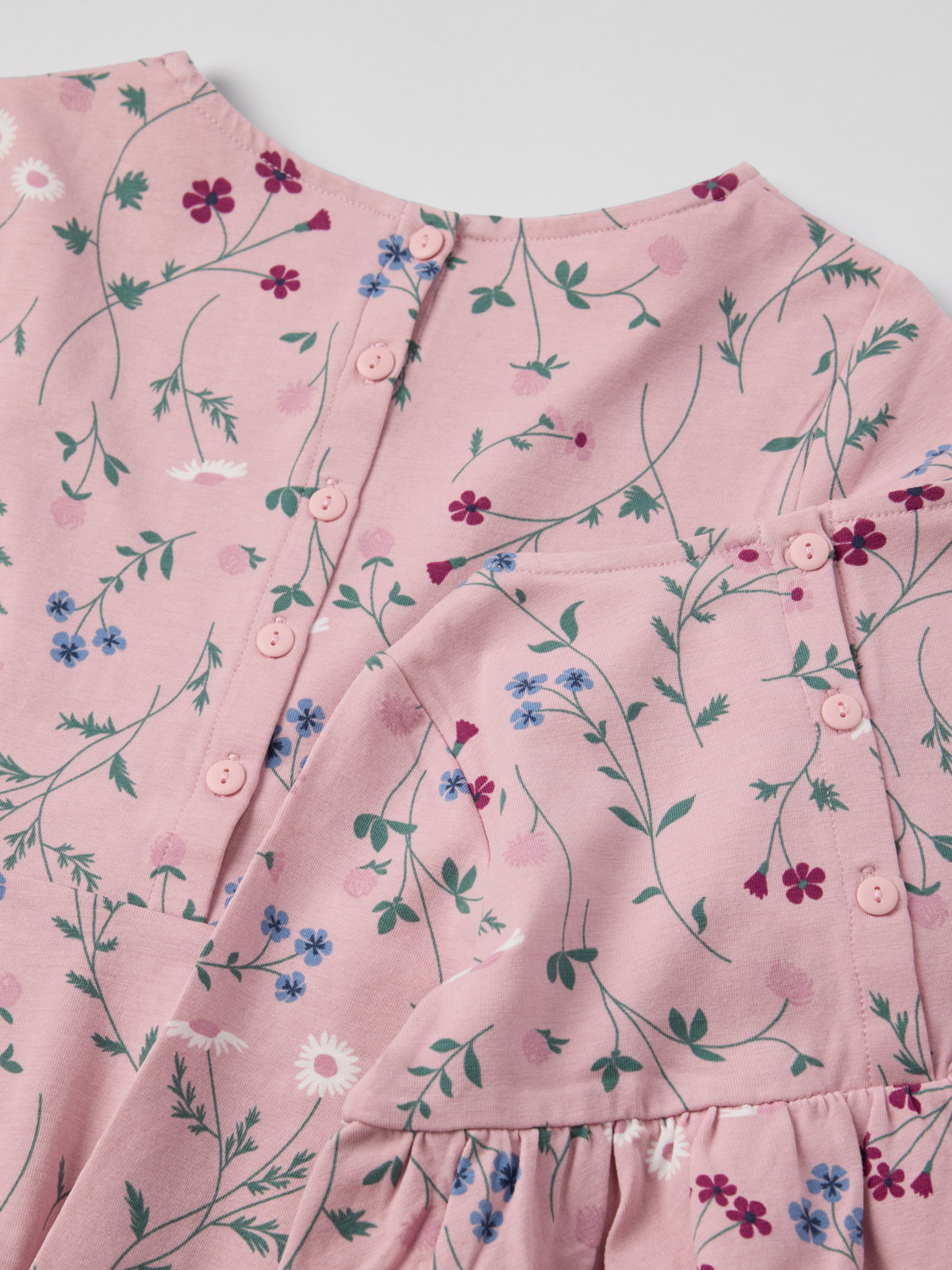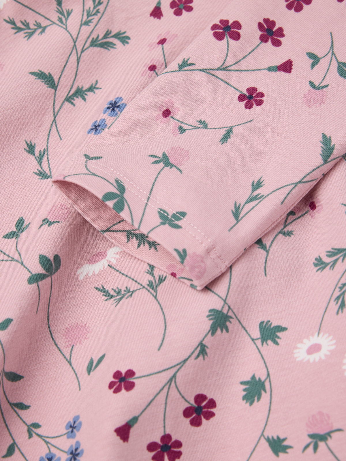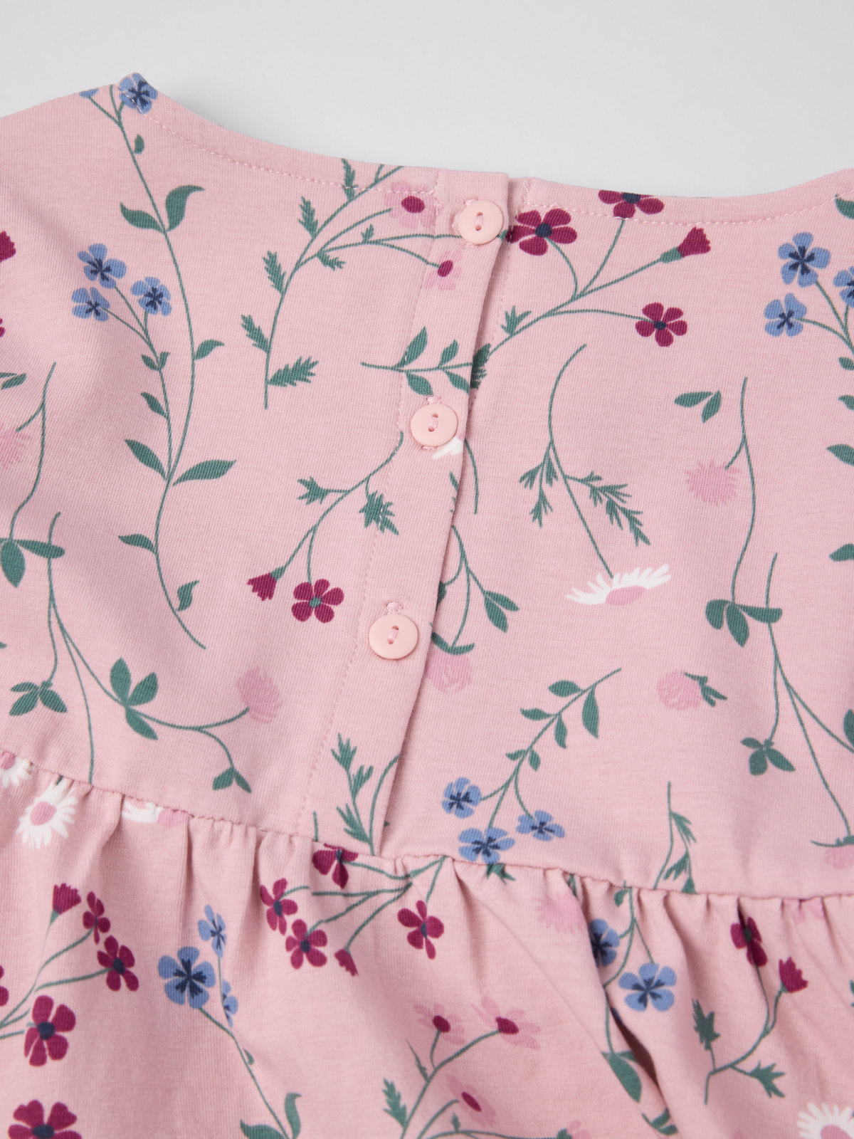 Tämä mekko on lapsen vaatekaapin suosikki! Valmistettu pehmeästä luomupuuvillatrikoosta. Erityisen leveä hameosa, joka näyttää hienolta pyöriessä. Nappilista takana.