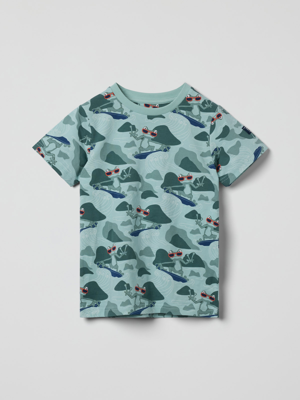 T-paita pehmeää luomupuuvillaa. Kuvioitu kokonaan sammakkokuviolla – pitkäikäinen suosikki sopii kaikkiin tilanteisiin!