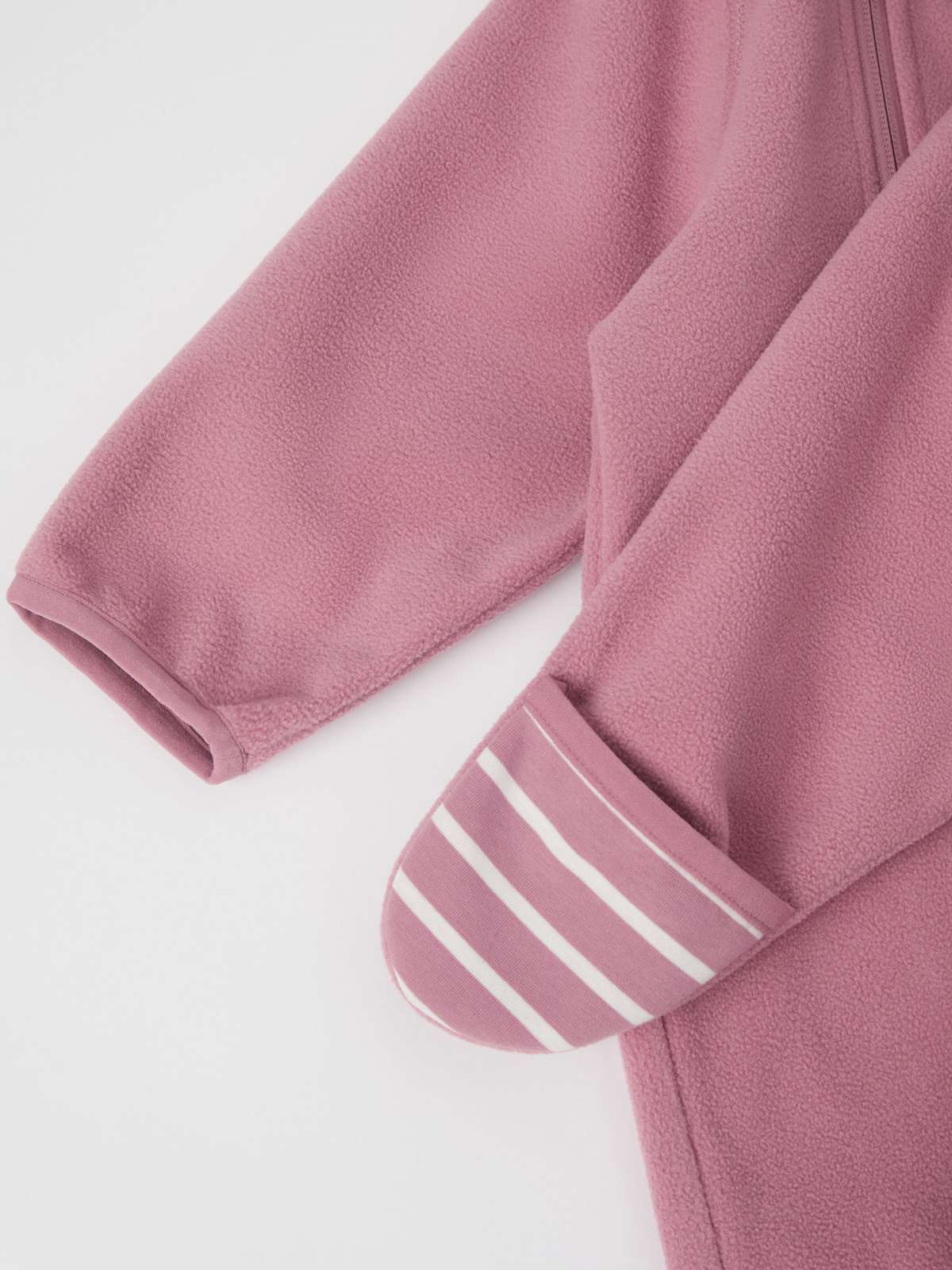 Haalarissa on lisäksi pyöristetyt hihan- ja lahkeensuut, jotka voi taittaa lämmittämään mukavasti pieniä käsiä ja jalkoja.