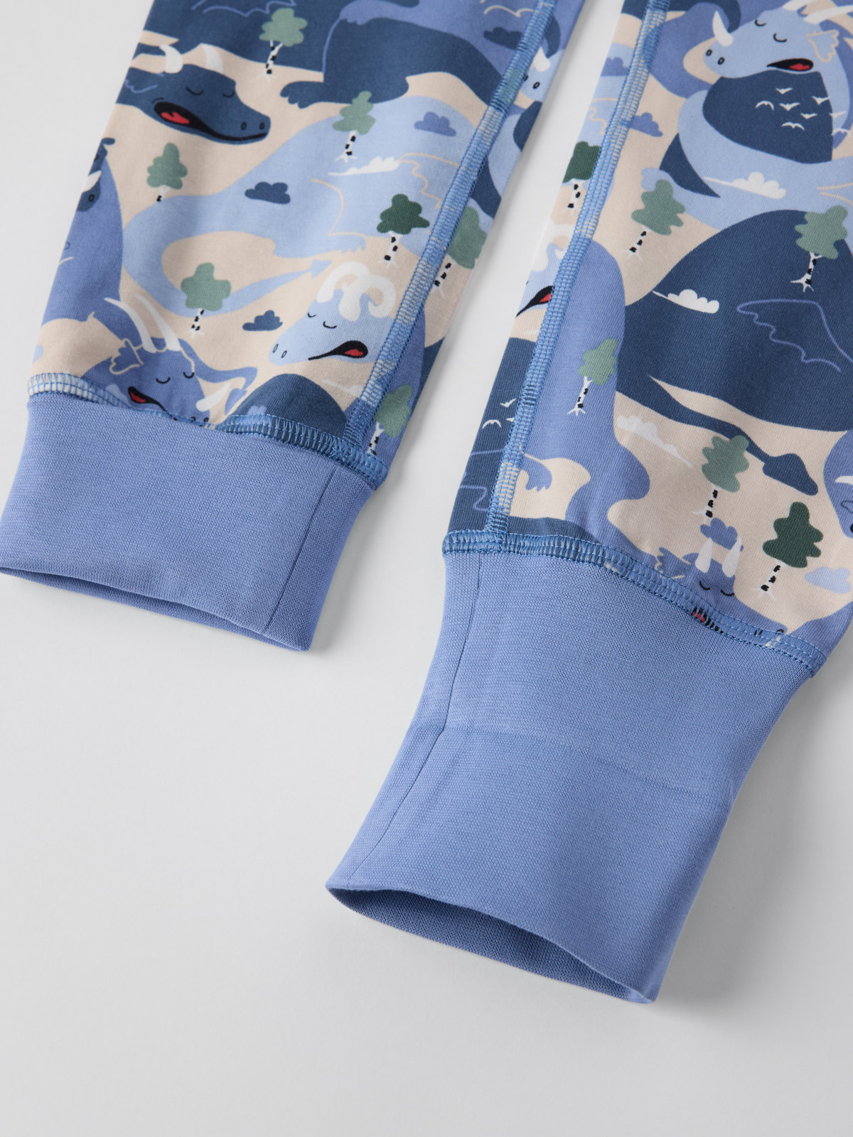 Kaksiosainen pyjama pehmeää luomupuuvillaa. Paidan hihansuissa on erityspitkät resorit, jotka voi taittaa ylös ja alas. Housuissa on joustava vyötärö ja erittäin pitkät resorit lahkeensuissa.