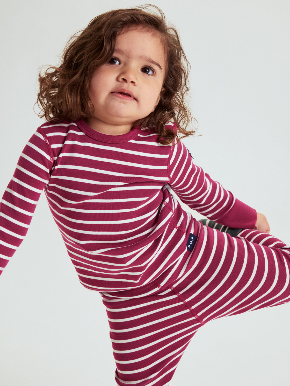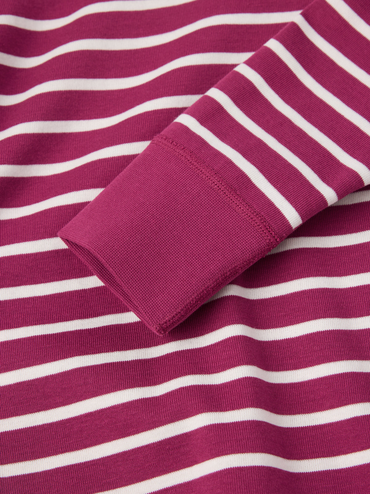 Ribbipaita pehmeää luomupuuvillaa. Paidassa on klassinen raitakuosimme ja pehmeä ribbiresori pääntiessä ja hihansuissa.