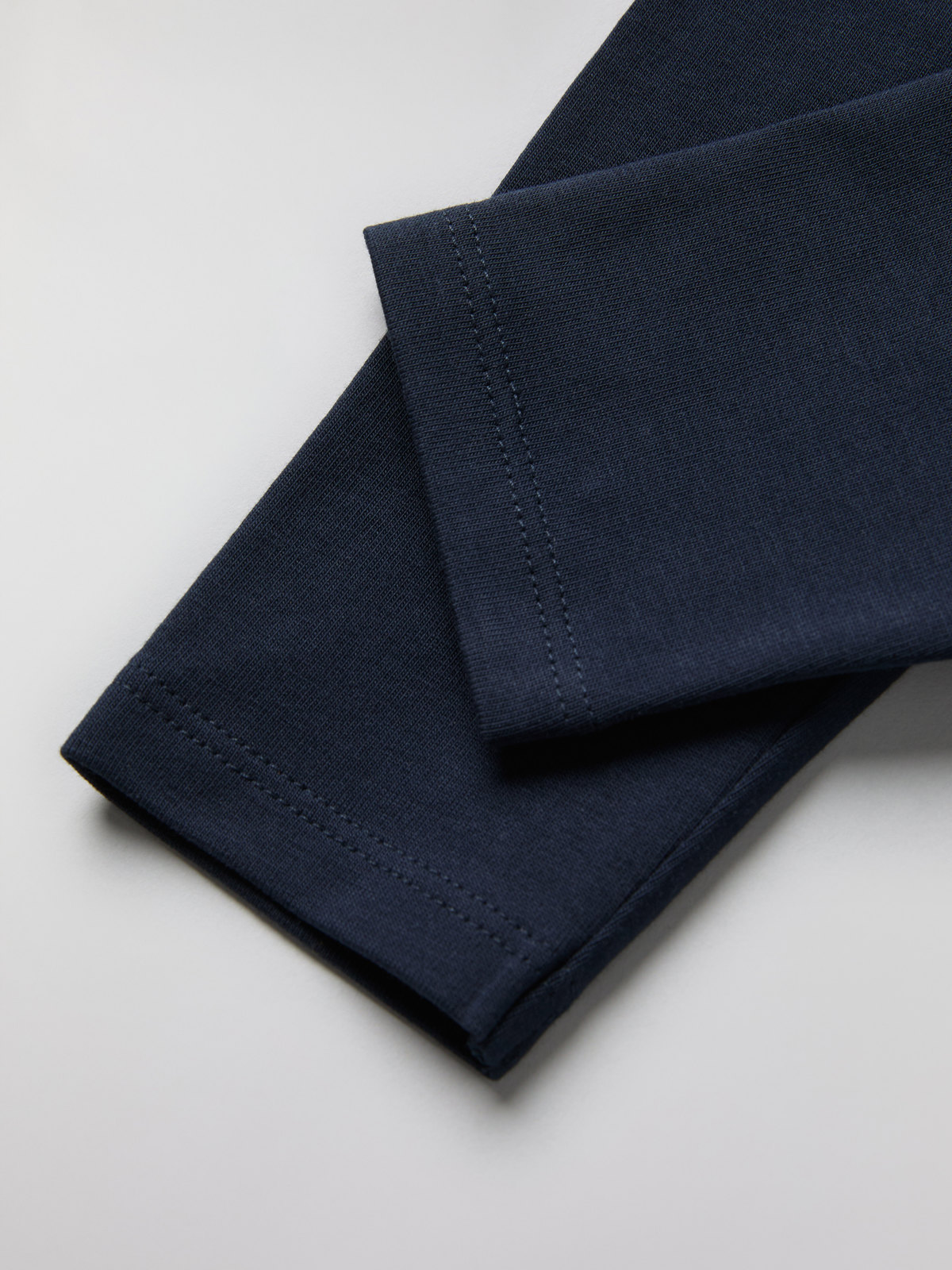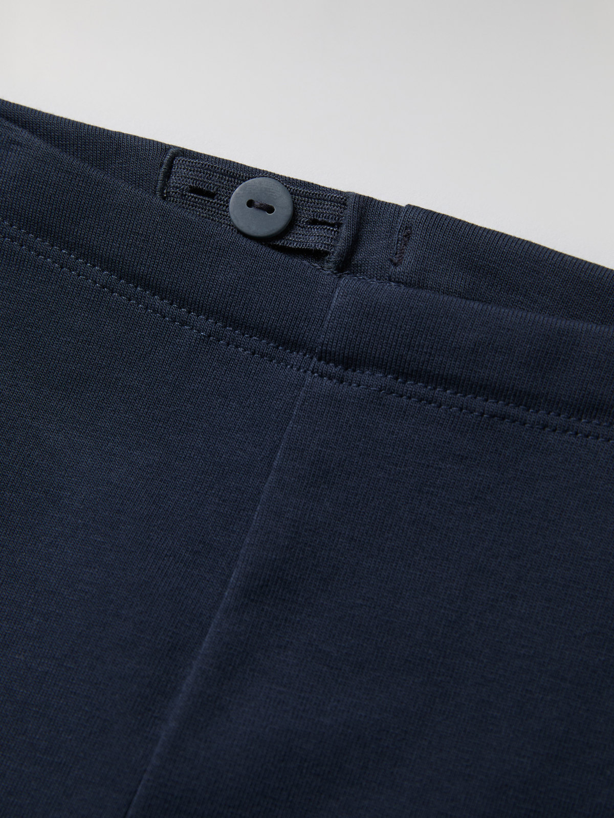Pehmeissä luomupuuvillaisissa leggingseissä on reikäkuminauhalla sisäpuolelta säädeltävä vyötärö.