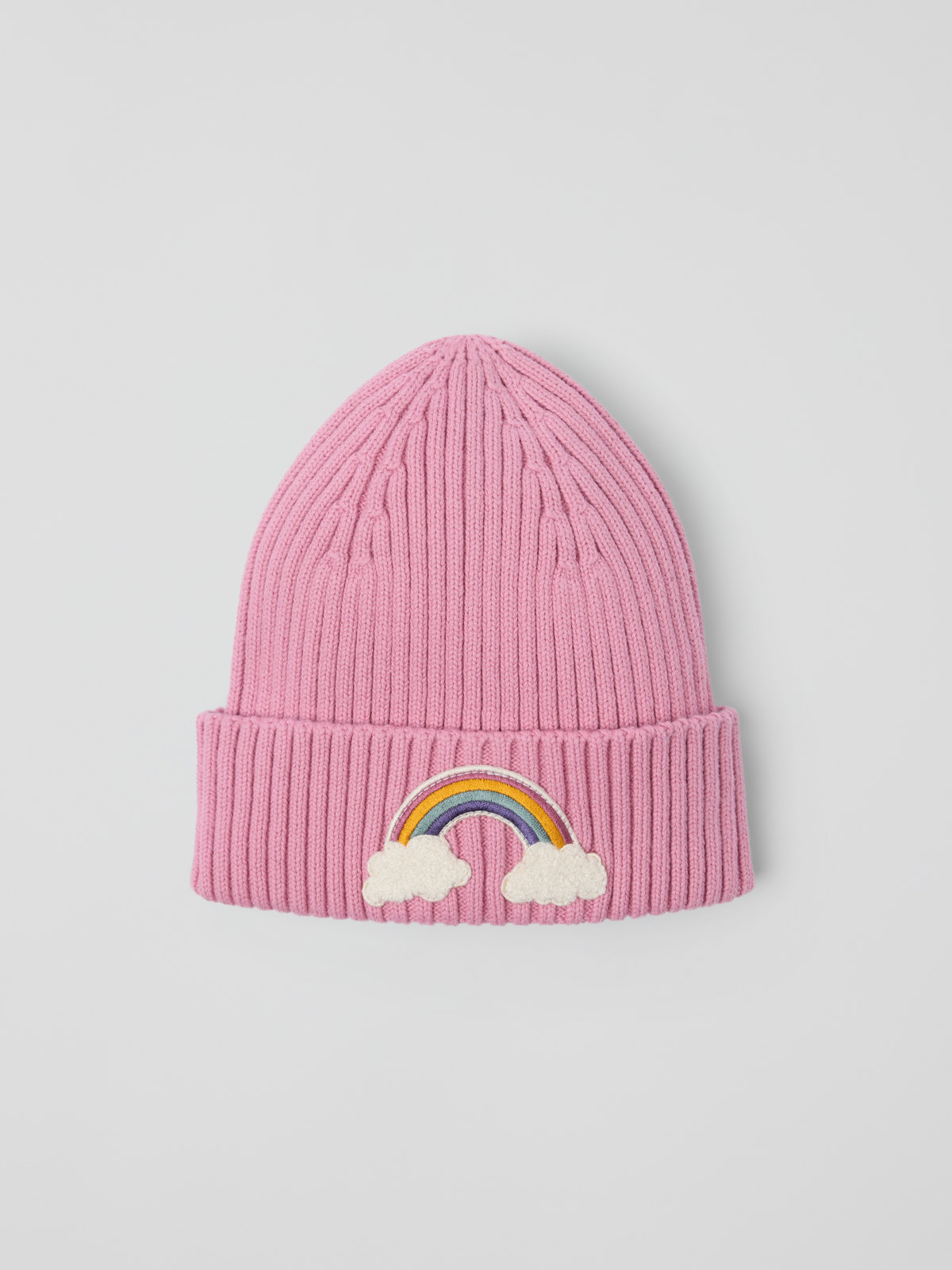 Ribbipipo luomupuuvillaa – täydellinen viileisiin syys- ja kevätpäiviin. Pipossa on taite ja edessä brodeerattu applikointi.