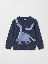 Pehmeä ja kaunis collegepaita 100 % luomupuuvillaa. Edessä iso dinosauruskuvio, joka jatkuu selässä.