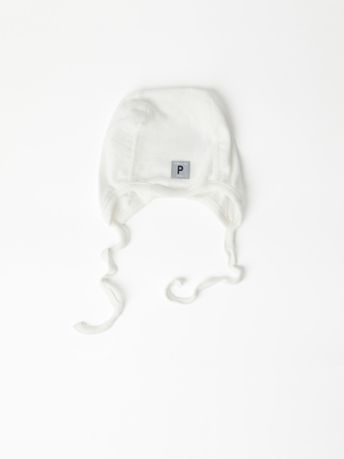 Vastasyntyneen yksivärinen kypärämyssy 100 % luomupuuvillaa. Leuan alta solmittavien nauhojen avulla se pysyy hyvin paikoillaan.