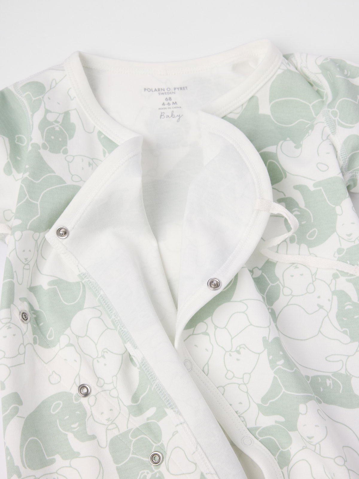 Pehmeä ja kaunis kietaisuhaalari 100 % luomupuuvillaa – täydellinen kotoiluun! Haalari on kuvioitu kokonaan tammenoksakuviolla. Erittäin pehmeät ja litteät saumat, jotka eivät hankaa herkkää ihoa. Hihan- ja lahkeensuissa taitettavat resorit. Taitettavat hihansuut suojaavat pieniä käsiä kylmyydeltä ja viimalta. Hihojen alla on kaunis nauha, jonka voi solmia rusetiksi.