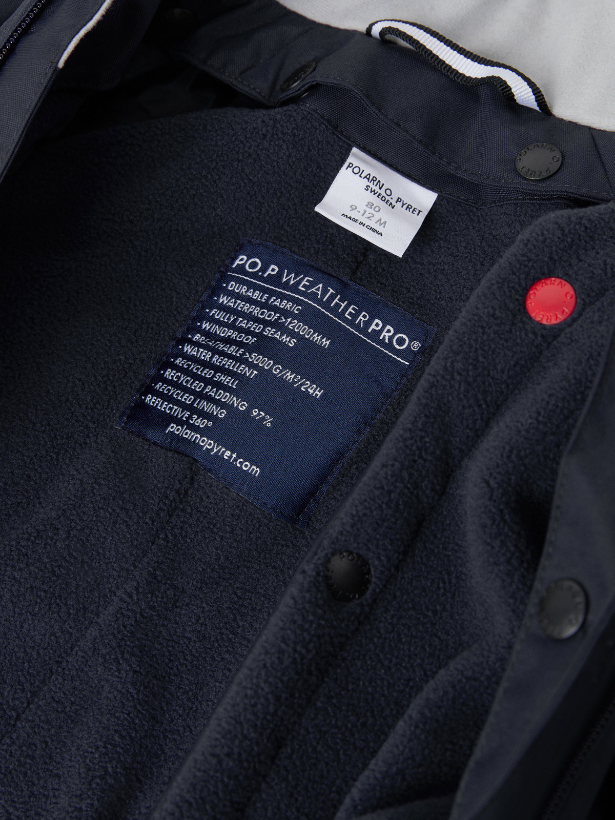 Ulkovaatteet, joissa on merkintä PO.P WeatherPro®, täyttävät kaikki vaatimuksemme teknisille ulkovaatteille, olipa kyse sitten kestävyydestä, vedenpitävyydestä, hengittävyydestä tai lapsiturvallisuudesta.