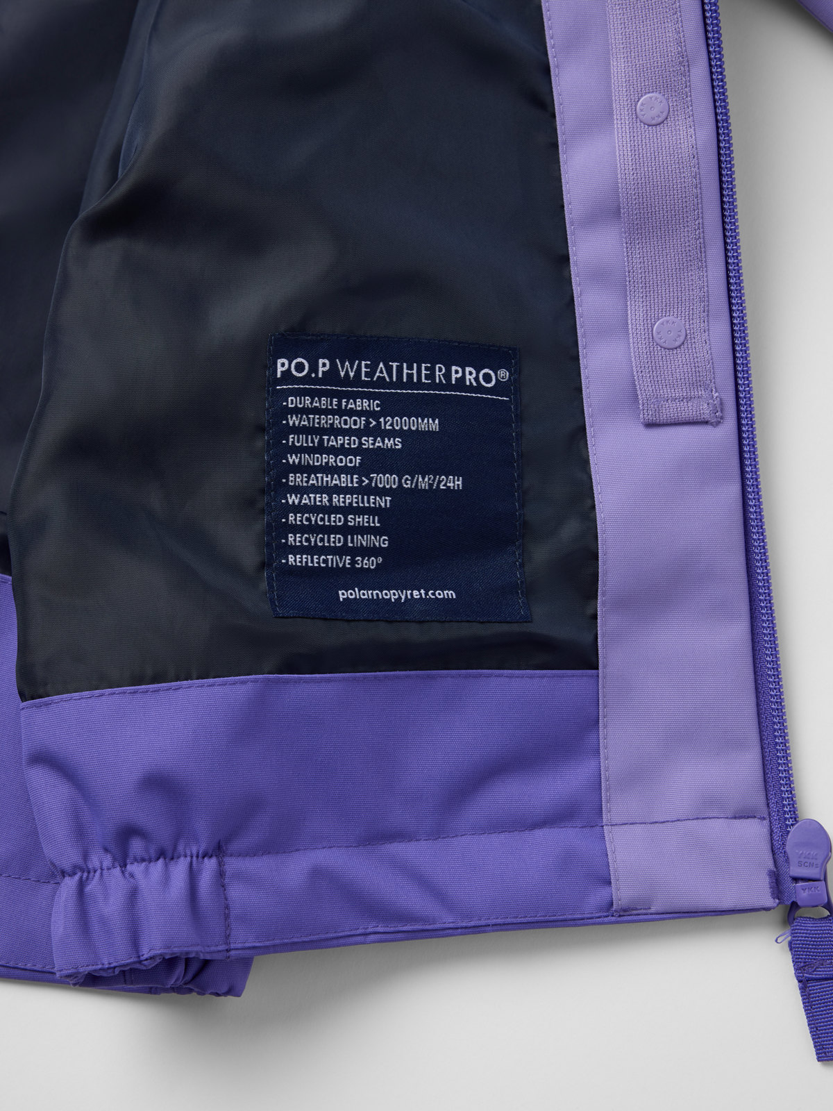 Ulkovaatteet, joissa on merkintä PO.P WeatherPro®, täyttävät kaikki vaatimuksemme teknisille ulkovaatteille, olipa kyse sitten kestävyydestä, vedenpitävyydestä, hengittävyydestä tai lapsiturvallisuudesta.
